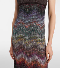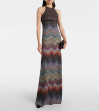 Missoni's iconic Zig Zag pattern was first introduced in the 1950s and is now a symbol of Italian luxury. Made from shimmering lame, this halterneck maxi dress showcases the signature motif. Product Details - Material: 69% viscose, 16% metallic fibres, 15% polyamide - Care instructions: hand wash - Made in Italy - Designer color name: Multi Dark - Item color: multicolor - Lining: 77% polyamide, 23% elastane - Item number: P01108598 Size & Fit - True to size - Low back - Fitted - Stretchy fabric - The model seen in the picture is 178cm-5'10" and wearing a size IT 38