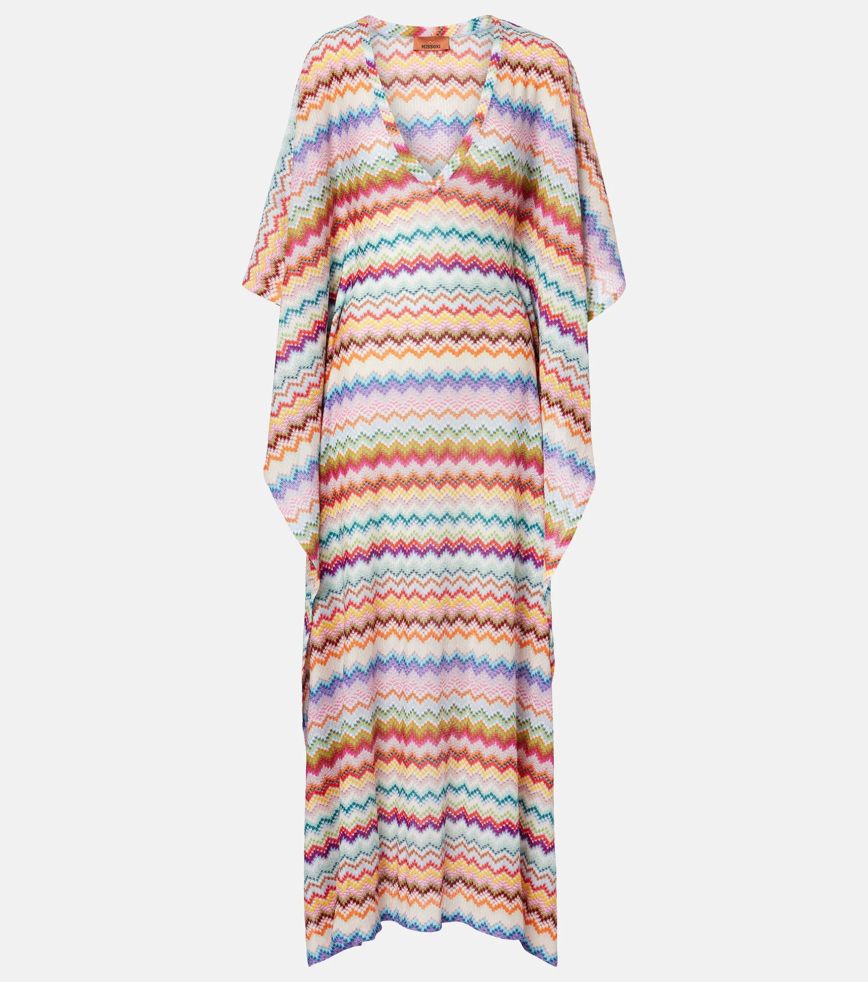 Missoni translates its iconic Zig Zag pattern onto swim and resortwear, making Missoni Mare the ultimate choice for poolside glamour. This breezy kaftan is crafted from the signature Zig Zag-patterned lame and features a V-neckline and side slits. Product Details - Material: 83% viscose, 17% metallic fibres - Care instructions: dry clean - Made in Italy - Designer color name: Multicolor W/Light Base - Item color: multicolor - Collar: V-neck - Side slits - Item number: P01107454 Size & Fit - True to size - Cinched waist - Stretchy fabric - The model seen in the picture is 178cm-5'10" and wearing a size XS