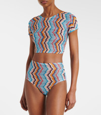 Missoni's iconic Zig Zag pattern was first introduced in the 1950s and is now a symbol of Italian luxury. This bikini showcases the signature motif with a playful lame design that has rear-tie fastening. Product Details - Material: 89% viscose, 11% metallic fibres - Care instructions: hand wash - Made in Italy - Designer color name: Multicolor - Item color: multicolor - Closure: self-ties - Two-piece set - Item number: P01035089 Size & Fit - True to size - Low back - Sheer - Unpadded Top - Medium-cut leg - The model seen in the picture is 178cm-5'10", cup size B, and wearing a size IT 42