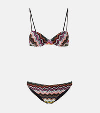 This lame bikini features Missoni's iconic Zig Zag pattern, which was first introduced in the 1950s and is now a symbol of Italian luxury. The vibrant design is complete with self-ties for a customizable fit. Product Details - Material: 83% viscose, 17% metallic fibres - Care instructions: hand wash - Made in Italy - Designer color name: Multicolor - Item color: multicolor - Two-piece set - Lining: 80% polyamide, 20% elastane - Closure: clip fastening - Item number: P01107481 Size & Fit - True to size - Padded, underwired top - Medium-cut leg - The model seen in the picture is 178cm-5'10", cup size B, and wearing a size IT 38