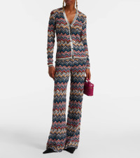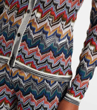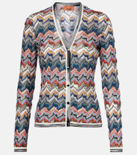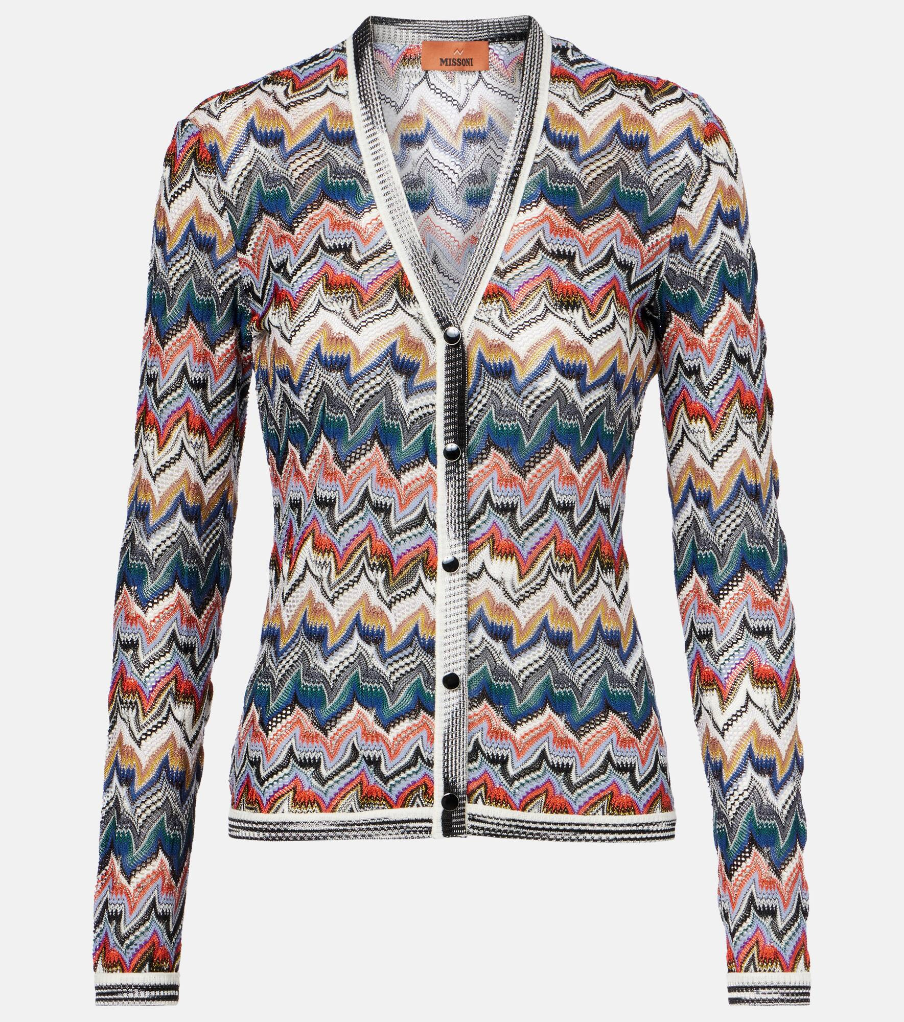 A style with a bold and sophisticated character, this Missoni cardigan is crafted from the brand's signature lame threads. Its vibrant Zig Zag pattern enhances the V-neck silhouette, lending an interesting vibrancy to the ensemble. Product Details - Material: 66% viscose, 30% wool, 4% metallic fibres - Care instructions: machine wash at 30 degrees - Made in Italy - Designer color name: Multicolor tones - Item color: multicolor - Hardware color: silver, black - Collar: V-neck - Closure: snap-buttoned front - Item number: P01045613 Size & Fit - True to size - Fitted - Stretchy fabric - Falls to the hip - The model seen in the picture is 178cm-5'10" and wearing a size IT 38