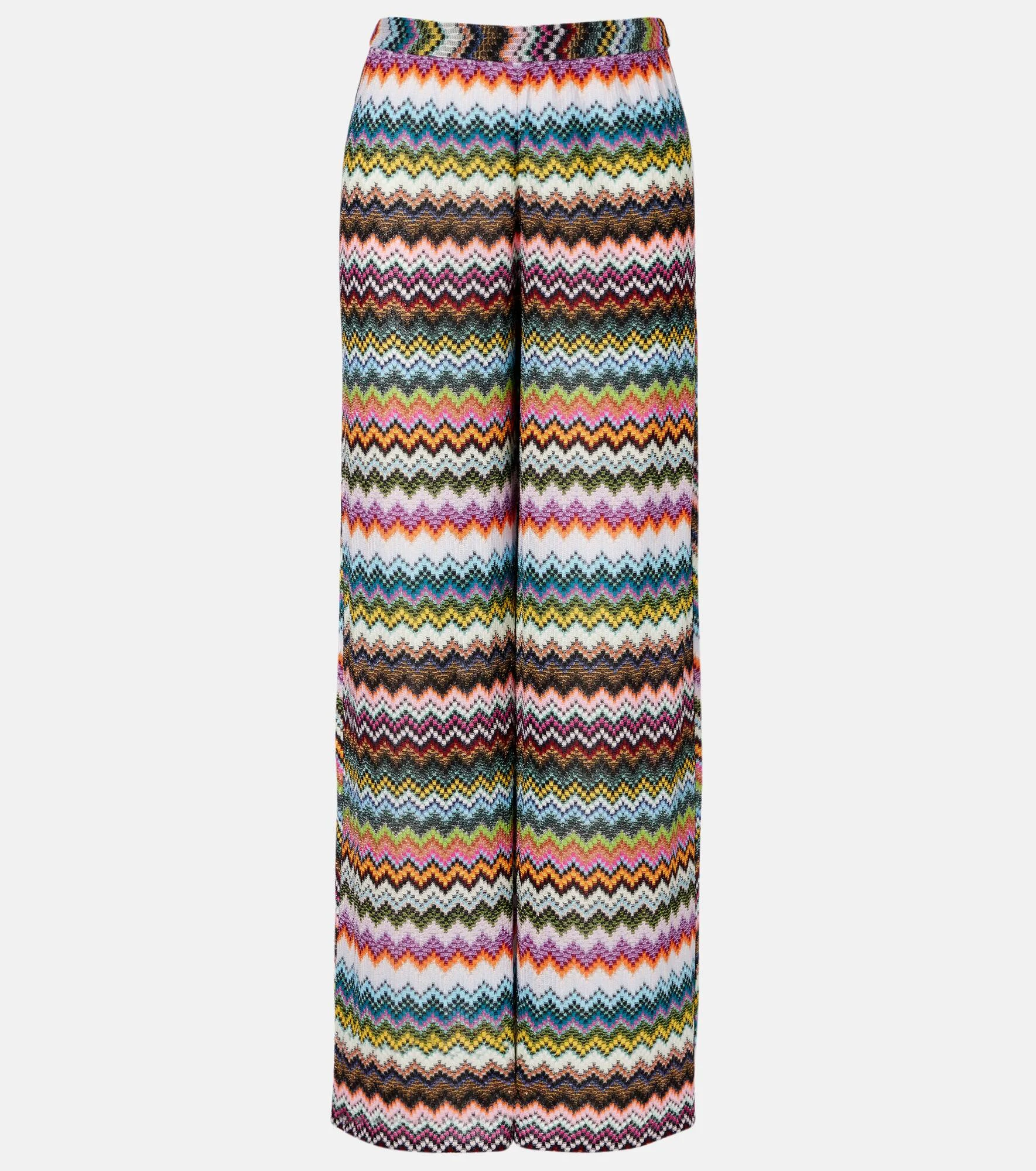 Missoni's iconic Zig Zag pattern was first introduced in the 1950s and is now a symbol of Italian luxury. These palazzo pants are crafted from lame and showcase the signature pattern in bright hues. Product Details - Material: 83% viscose, 17% metallic fibres - Care instructions: dry clean - Made in Italy - Designer color name: Multicolor E/ Dark Base - Item color: multicolor - Elasticated waistband - Item number: P01107475 Size & Fit - True to size - Elasticated waist - Stretchy fabric - Wide-leg - High-waisted - Height of model is 174cm-68.5" and wears a size IT 38