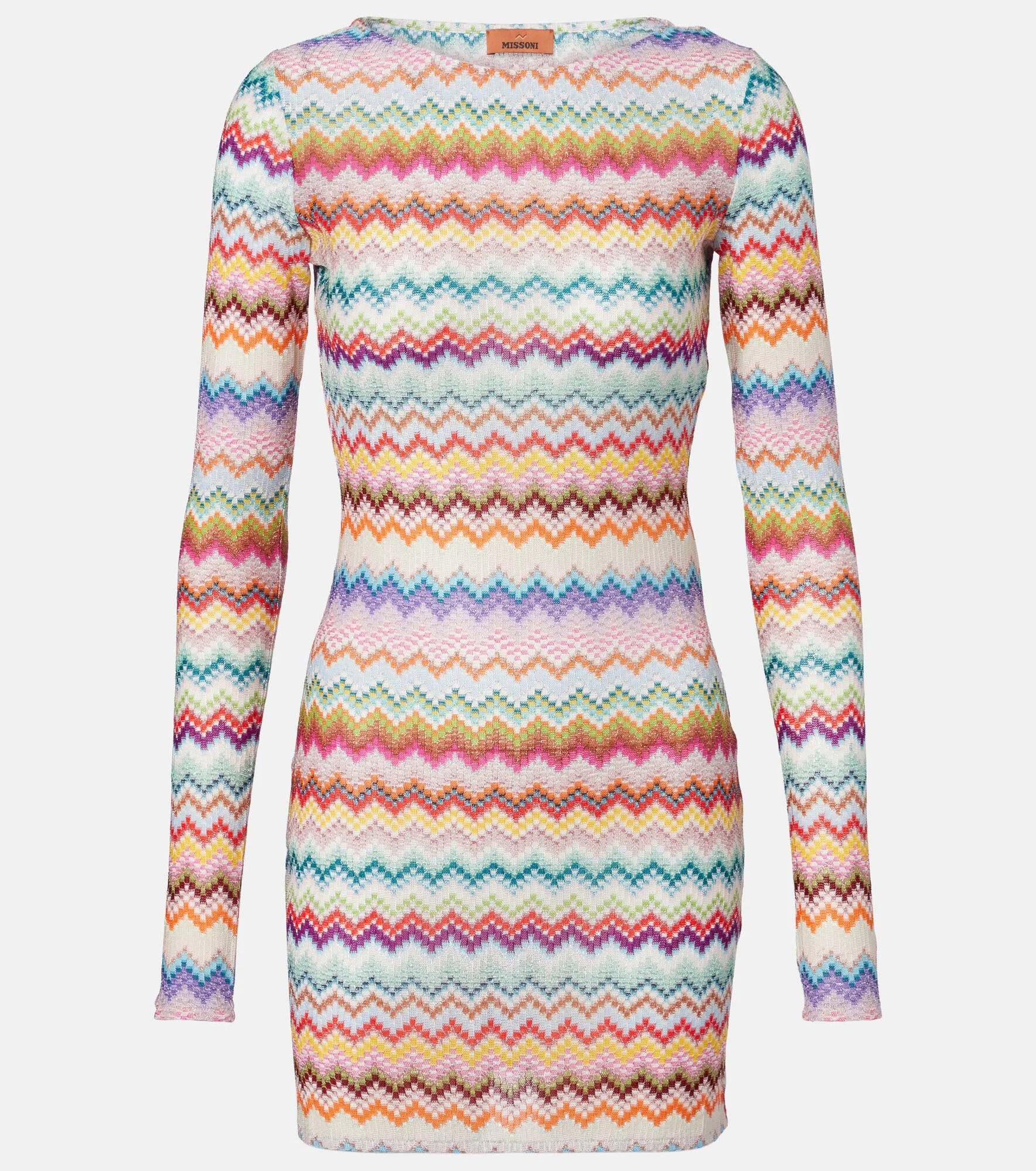 Viscose Lamé Mini Dress with Pixelated Zigzag Motif