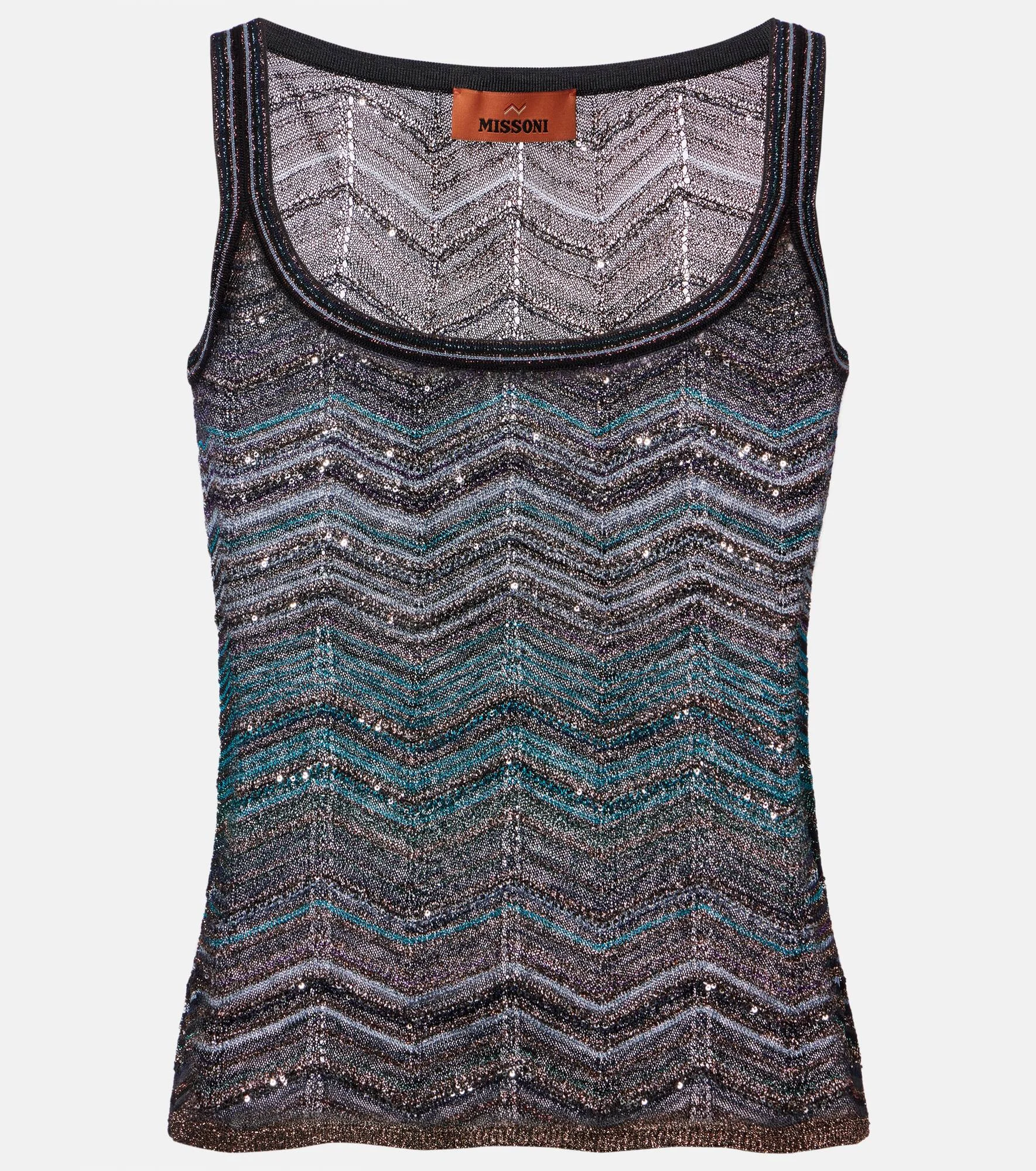 Chevron Lamé Viscose Sleeveless Crewneck Top with Sequins