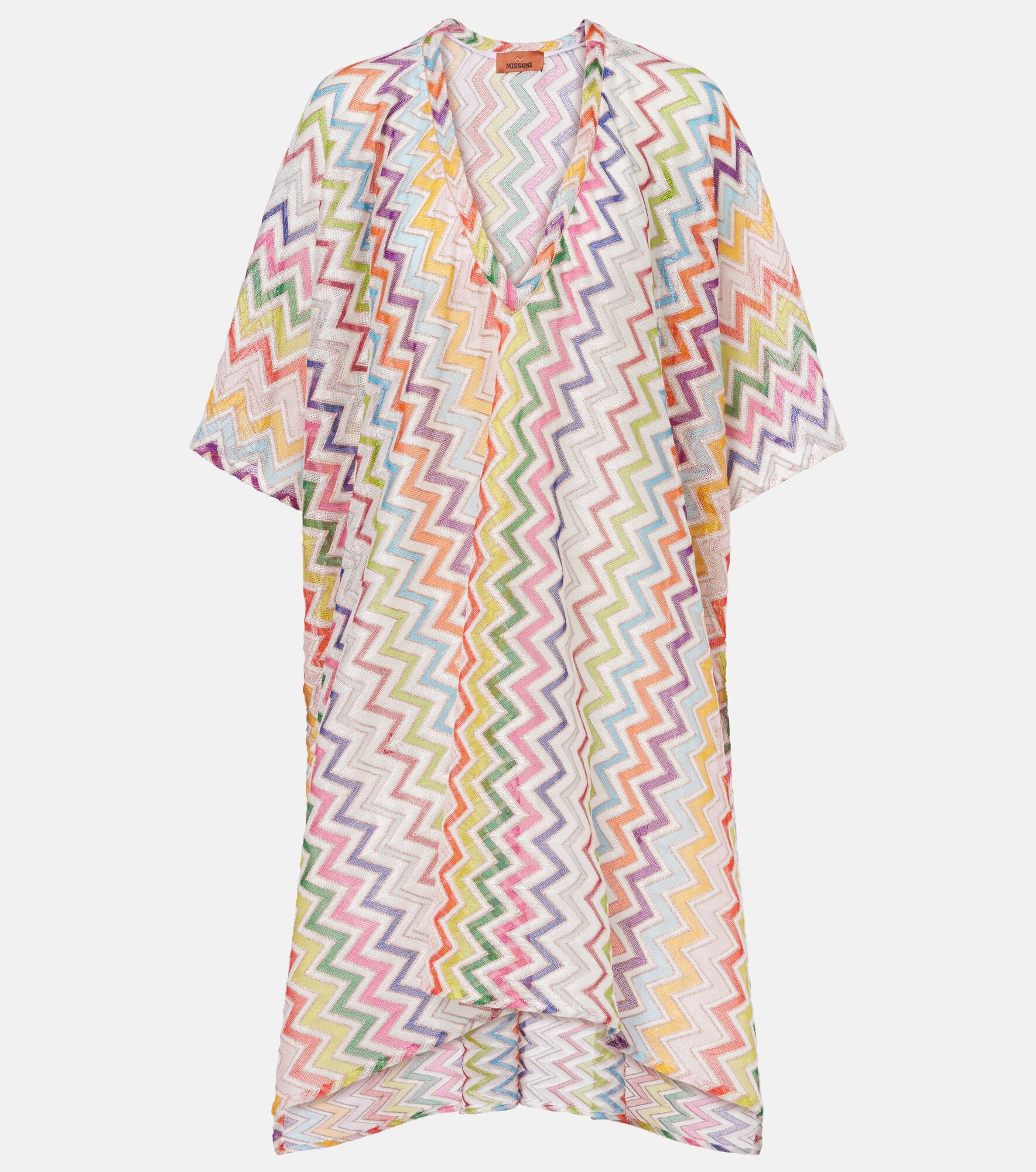 Missoni translates its iconic Zig Zag pattern onto swim and resortwear, making Missoni Mare the ultimate choice for poolside glamour. This beach semi-sheer dress is woven with metallic fibers for a subtle, light-catching finish. Product Details - Material: 60% viscose, 25% polyester, 15% metallic fibres - Care instructions: dry clean - Made in Italy - Designer color name: Multicolor w/White Base - Item color: multicolor - Item number: P01035118 Size & Fit - True to size - Designed for a loose fit - Slightly stretchy fabric - The model seen in the picture is 178cm-5'10" and wearing a size XS