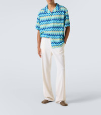 Missoni's iconic Zigzag pattern was first introduced in the 1950s and is now a symbol of Italian luxury. This bowling shirt is designed with short sleeves, a buttoned front, and a patch pocket. Product Details - Material: 100% viscose - Care instructions: dry clean - Made in Tunisia - Designer color name: Blue and green tones - Item color: blue, green - Cuban collar shirt - Closure: buttoned front - Item number: P01044101 Size & Fit - True to size - Dropped shoulders - Designed for a loose fit - Non-stretchy fabric - Falls below the hip - Height of model is 188cm-74" and wears a size L
