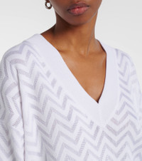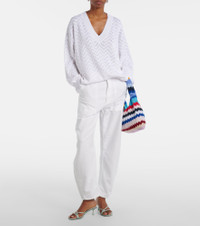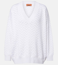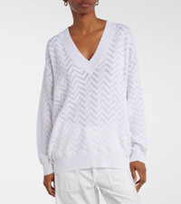 Missoni's iconic Zigzag pattern was first introduced in the 1950s and is now a symbol of Italian luxury. It's featured on this sweater, made in Italy from cotton-blend fabric and complete with a V neckline. Product Details - Material: 63% cotton, 37% viscose - Care instructions: hand wash - Made in Italy - Color: white - Designer color name: Solid White - Item number: P01108623 Size & Fit - True to size - Dropped shoulders - Designed for a loose fit - Falls below the hip - The model seen in the picture is 178cm-5'10" and wearing a size IT 38
