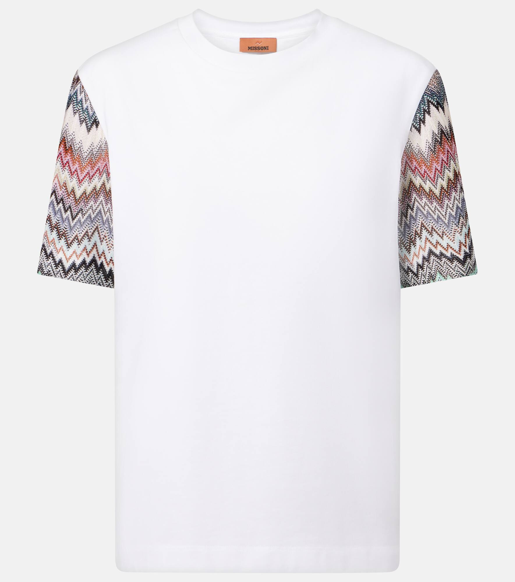 Look to Missoni for a playful take on a classic T-shirt. This style is made from cotton jersey to a regular silhouette, featuring the brand's iconic Zigzag motif on the sleeves. Product Details - Material: 100% cotton - Care instructions: dry clean - Made in Italy - Designer color name: S01IO - Item color: white - Insert: 100% viscose - Length: regular (hip-length) - Regular fit - Sleeves: short-sleeved, set-in - Hem: straight - Item number: P01045553 Size & Fit - True to size - Designed for a loose fit - Slightly stretchy fabric - Falls to the hip - Height of model is 175cm-69" and wears a size XS