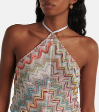 Short jumpsuit with 3D zig zag lamé and halter neckline