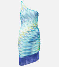 Capture everyone's attention at your next sunny getaway with Missoni's designs, such as this minidress. The style is made from a sheer knit with a signature Zigzag motif and is complete with fringed trims. Product Details - Material: 100% polyester - Care instructions: dry clean - Made in Italy - Designer color name: Blue and green macro chevron - Item color: multicolor - Trim: 100% acetate - Hem: elasticated, uneven - Slim fit - Fringed hem - Item number: P01045543 Size & Fit - True to size - Sheer - Fitted - Stretchy fabric - The model seen in the picture is 178cm-5'10" and wearing a size IT 38