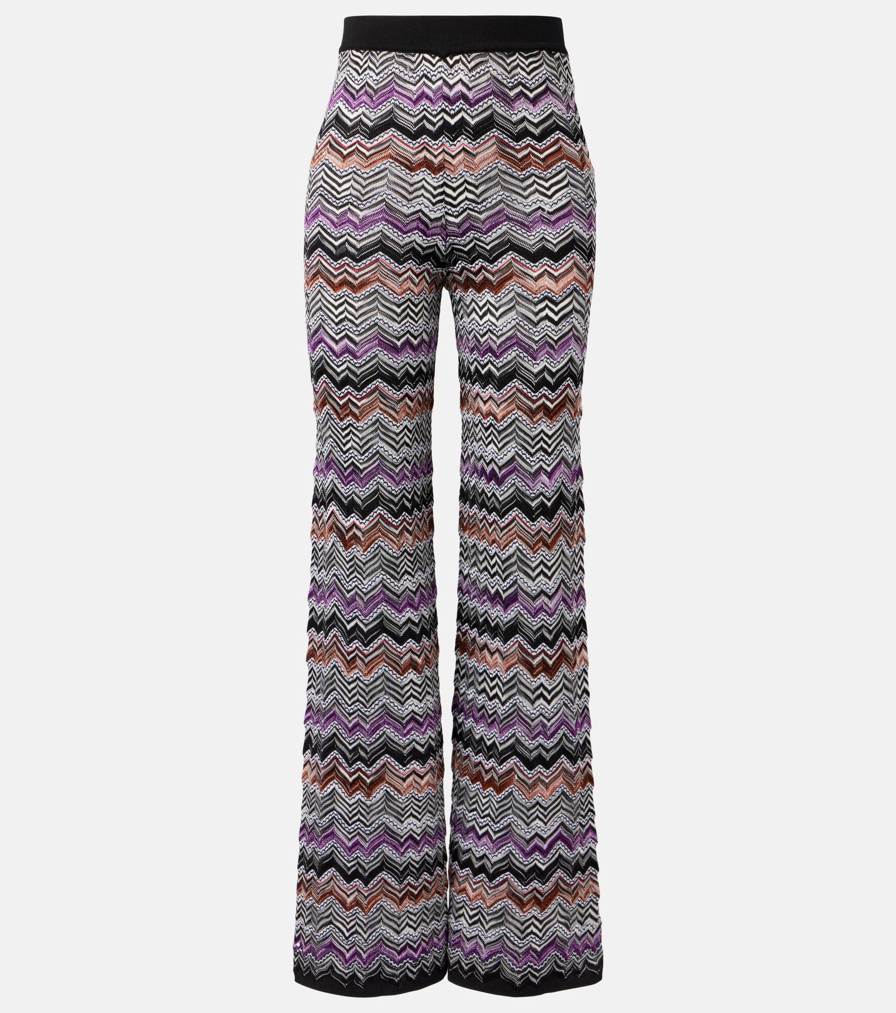 Missoni's iconic Zigzag pattern was first introduced in the 1950s and is now a symbol of Italian luxury. These knitted pants feature the beloved motif and come in a relaxed, wide-leg silhouette. Product Details - Material: 83% viscose, 15% cotton, 1% elastane, 1% polyamide - Care instructions: dry clean - Made in Moldova - Designer color name: dark tones - Item color: multicolor - Full length - Fit: wide-leg - High-rise - Elasticated waistband - Item number: P01045571 Size & Fit - True to size - Elasticated waist - Stretchy fabric - Wide-leg - High-waisted - The model seen in the picture is 178cm-5'10" and wearing a size IT 38