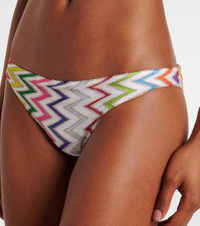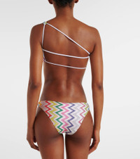 Bring glamor to the seaside with this bikini from Missoni. The two-piece design features a classic silhouette crafted in the brand's signature Zigzag lame fabrication. Product Details - Material: 60% viscose, 25% polyester, 15% metallic fibres - Care instructions: hand wash - Made in Italy - Designer color name: Multicolor w/White Base - Item color: white, multicolor - Lining: 80% polyamide, 20% elastane - Two-piece set - Elasticated waistband - Item number: P01035084 Size & Fit - True to size - Unpadded Top - Medium-cut leg - The model seen in the picture is 178cm-5'10", cup size B, and wearing a size IT 38