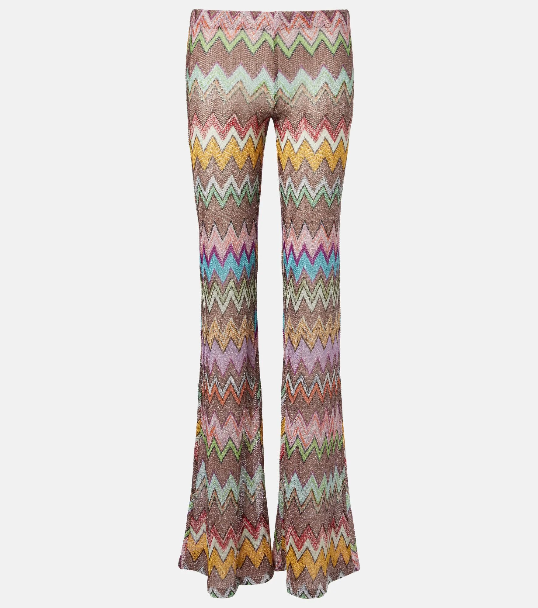 Missoni's iconic Zigzag pattern was first introduced in the 1950s and is now a symbol of Italian luxury. These pants are crafted in Italy from shimmering lame and feature a flared silhouette with the iconic motif. Product Details - Material: 86% viscose, 14% metallic fibres - Care instructions: dry clean - Made in Italy - Color: multicoloured - Designer color name: Multicolor W/Light Base - Elasticated waistband - Item number: P01121005 Size & Fit - True to size - Elasticated waist - Stretchy fabric - Flared - Sits low on the hips - Height of model is 174cm-68.5" and wears a size IT 38