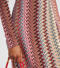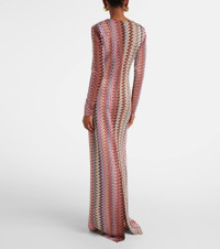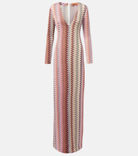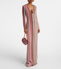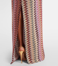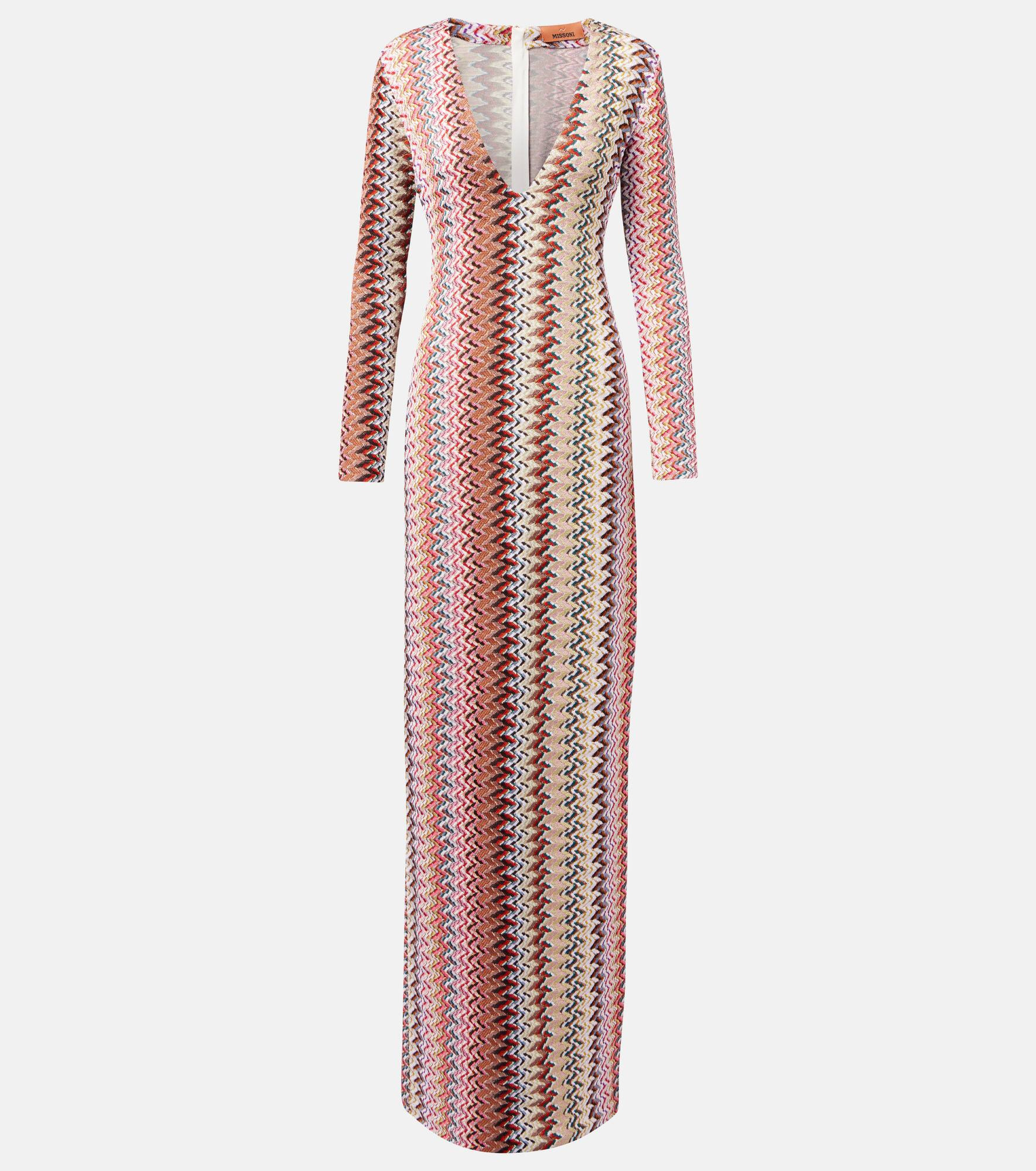 Missoni's iconic Zigzag pattern was first introduced in the 1950s and is now a symbol of Italian luxury. This gown is crafted from lame and boasts a deep V-neckline and the brand's iconic motif all over. Product Details - Material: 89% viscose, 6% metallic fibres, 5% polyamide - Care instructions: dry clean - Made in Italy - Designer color name: Multicolor - Item color: multicolor - Sleeves: long-sleeved - Collar: V-neck - Closure: zip and hook fastening - Vent: single - Lining: 100% polyester - Item number: P01045636 Size & Fit - True to size - Cinched waist - Non-stretchy fabric - slit length 57,0cm-22.5" - The model seen in the picture is 178cm-5'10" and wearing a size IT 38