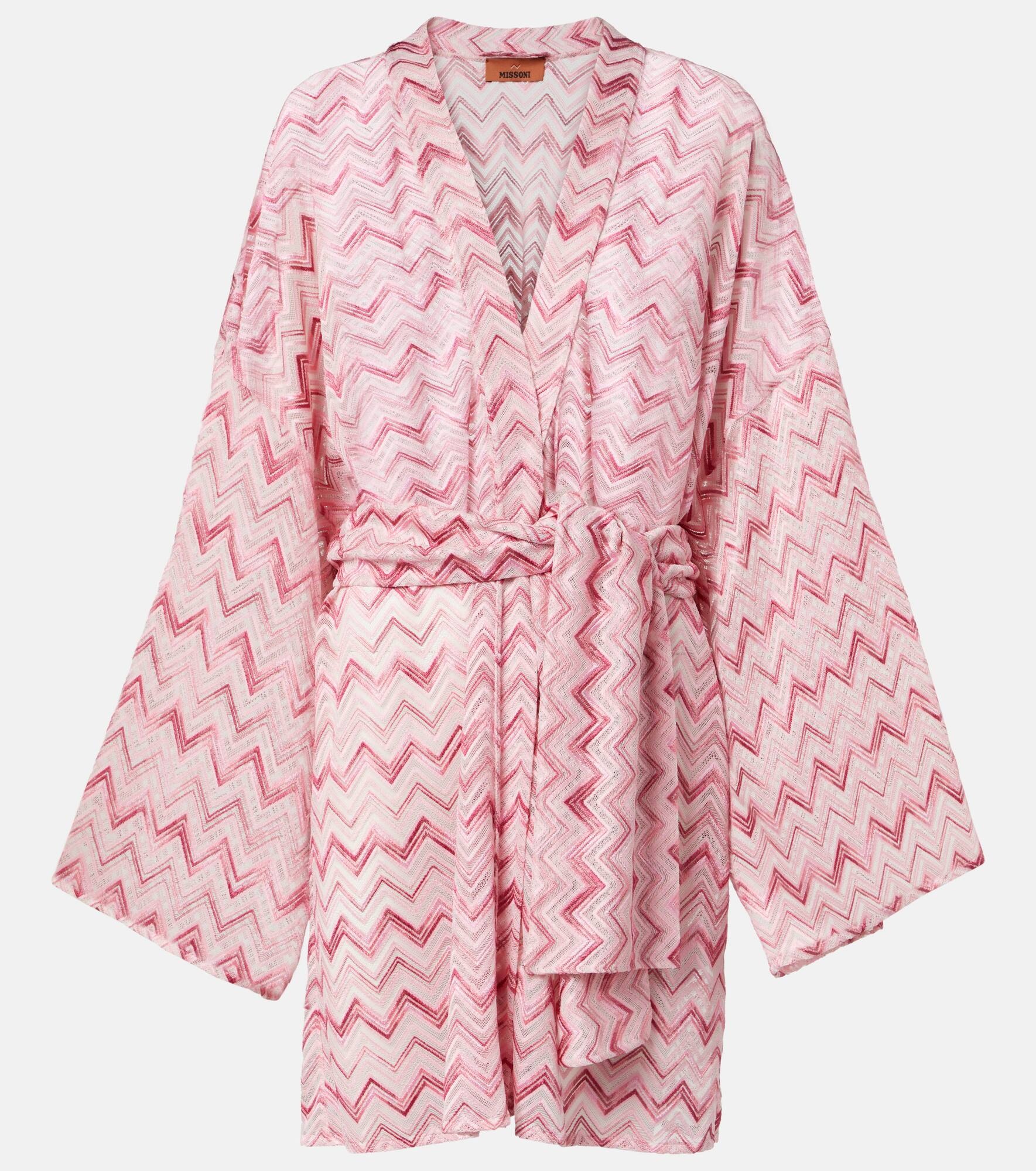 Product Details - Material: 65% viscose, 29% polyamide, 6% elastane - Care instructions: dry clean - Made in Italy - Designer color name: Pink/White - Detachable band - Item number: P01002374 Size & Fit - True to size - Dropped shoulders - Semi-sheer - Loose fit, comes with belt - Non-stretchy fabric - Falls below the hip - The model seen in the picture is 178cm-5'10" and wearing a size XS