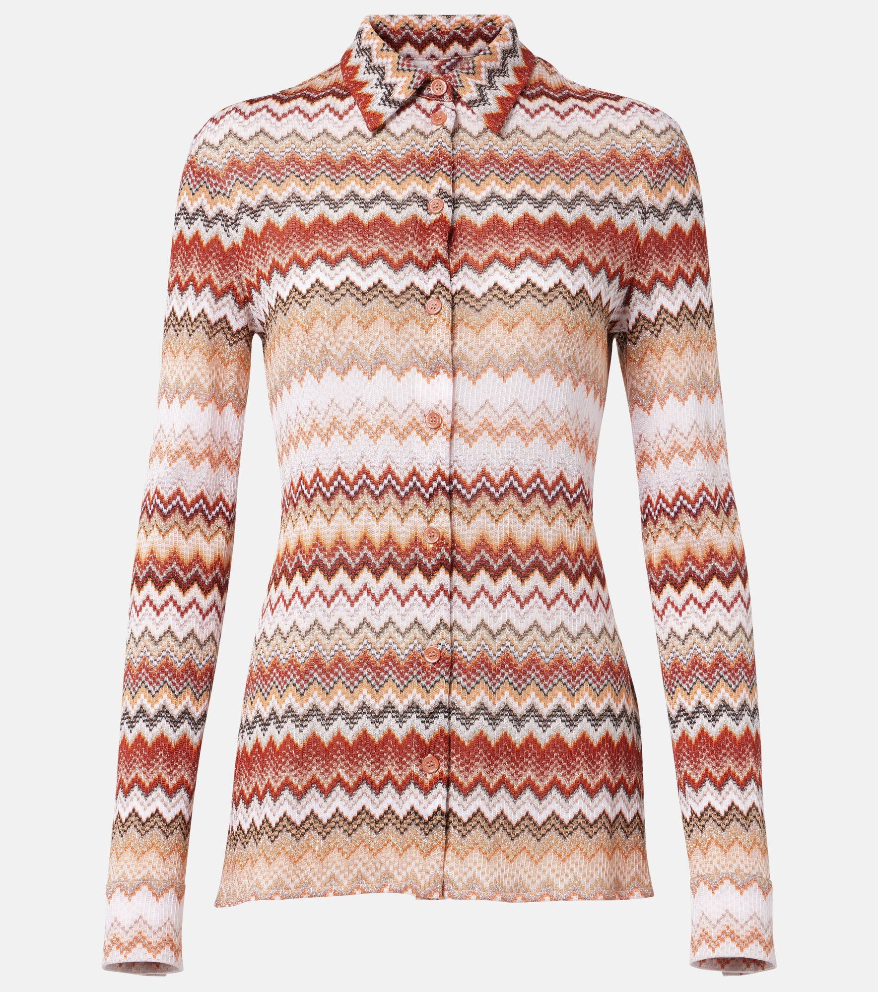 Missoni's iconic Zigzag pattern was first introduced in the 1950s and is now a symbol of Italian luxury. The brand's signature is featured on this shirt, made from lame. Product Details - Material: 79% viscose, 11% metallic fibres, 10% polyamide - Care instructions: dry clean - Made in Romania - Designer color name: Multi Brown Tones On Light - Closure: buttoned front - Item number: P01002312 Size & Fit - True to size - Straight fit - Stretchy fabric - Falls to the hip - The model seen in the picture is 178cm-5'10" and wearing a size IT 40