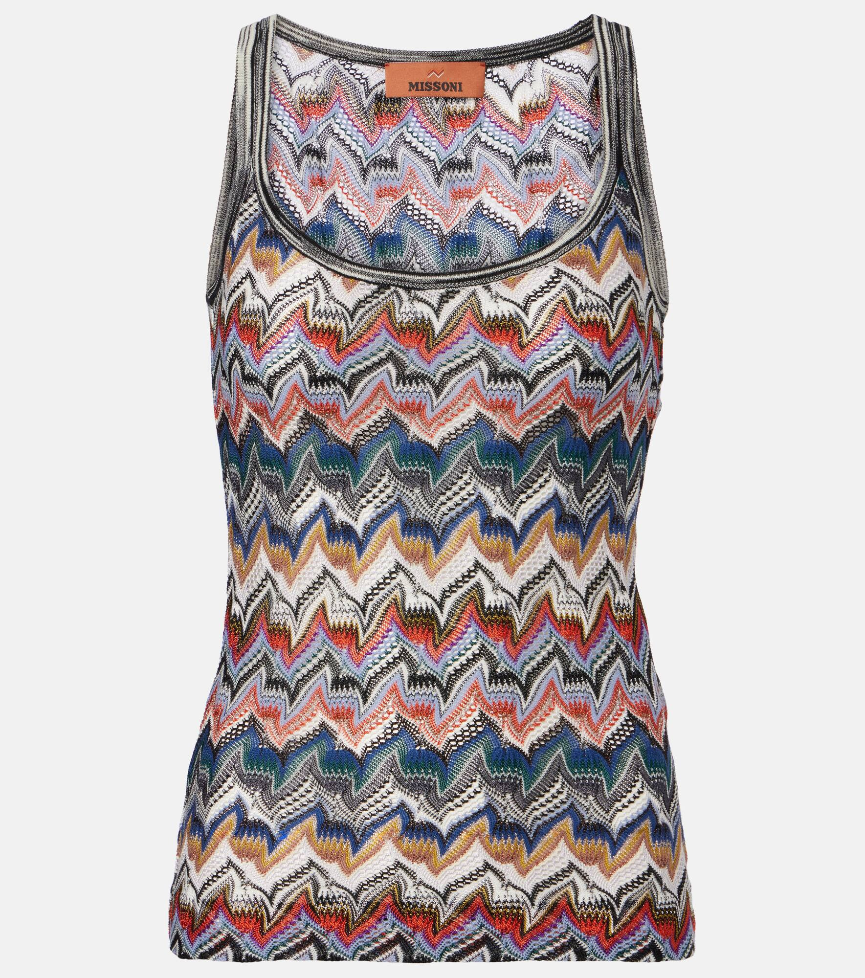 Missoni is famous for playing with texture and color. Made in Italy, this tank top offers both in abundance with its lame fabrication and Zigzag motif all over. Product Details - Material: 66% viscose, 30% wool, 4% metallic fibres - Care instructions: dry clean - Made in Italy - Designer color name: Multicolor tones - Item color: multicolor - Item number: P01045619 Size & Fit - True to size - Cinched waist - Stretchy fabric - Falls to the hip - The model seen in the picture is 178cm-5'10" and wearing a size IT 38