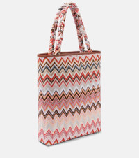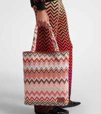 Product Details - Material: fabric - Lining: fabric - Made in Italy - Designer color name: Wave Pink - Trim: leather - Closure: magnetic fastening - Top handles - Internal details: internal slot pockets - Includes: dust bag - Item number: P00992701 Size & Fit - Height 40cm-15.5" - Width 32cm-12.5" - Depth 8,5cm-3.5" - Length of handles 52cm-20.5"