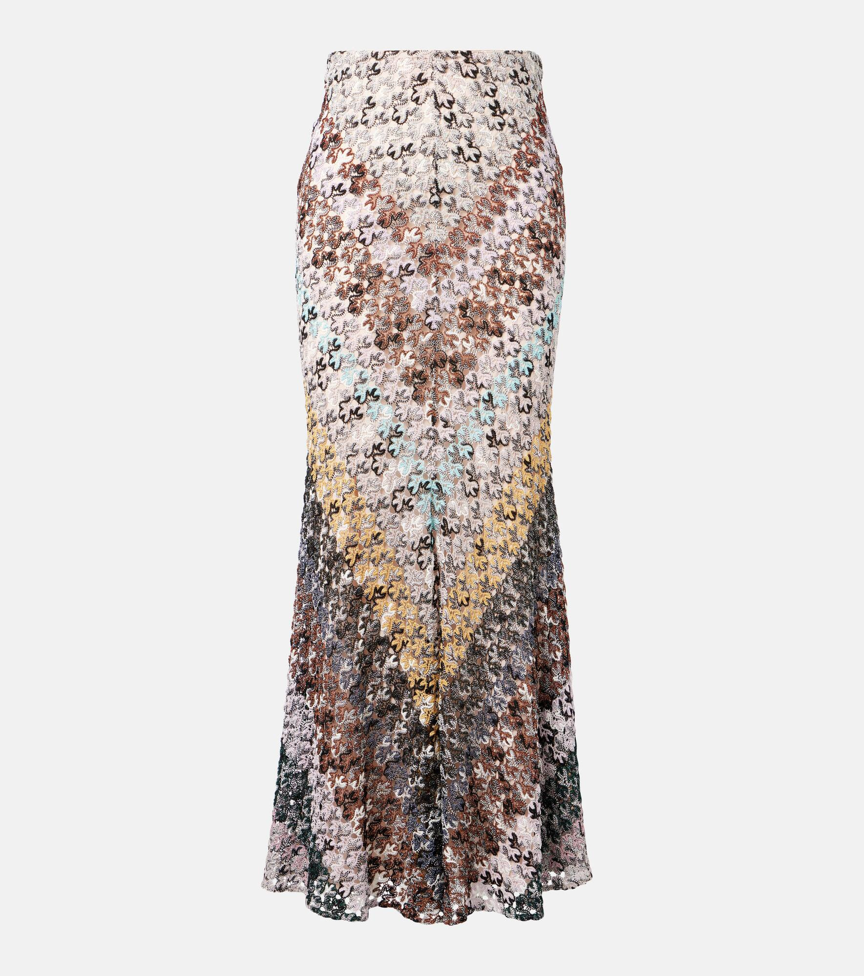 Missoni's iconic Zigzag pattern was first introduced in the 1950s and is now a symbol of Italian luxury. The pattern is featured on this maxi skirt. The design is fitted at the top and flared towards the bottom. Product Details - Material: 92% rayon, 8% metallic fibres - Care instructions: dry clean - Made in China - Designer color name: Multicolor tones - Item color: multicolor - Item number: P01045629 Size & Fit - True to size - Fitted - Stretchy fabric - The model seen in the picture is 178cm-5'10" and wearing a size IT 38
