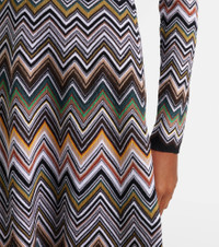 Missoni's iconic Zigzag pattern was first introduced in the 1950s and is now a symbol of Italian luxury. This minidress is adorned with the motif all over and features long sleeves, making it ideal for cooler mid-season days. Product Details - Material: 60% viscose, 34% wool, 6% polyester - Care instructions: dry clean - Made in Moldova - Designer color name: Multicolor brown and yellow - Item color: multicolor - Collar: crewneck - Item number: P01045596 Size & Fit - True to size - Cinched waist - Stretchy fabric - The model seen in the picture is 178cm-5'10" and wearing a size IT 38