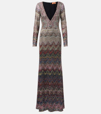 Boasting Missoni's unmistakable Zigzag motif, this maxi dress is made from sparkling lame fabric and embellished with sequins for added shimmer. A plunging neckline adds to the style's alluring glamour. Product Details - Material: 55% viscose, 23% polyamide, 18% polyester, 4% metallic fibres - Care instructions: dry clean - Made in Italy - Designer color name: Multicolor dark and beige tones - Item color: multicolor - Sleeves: long-sleeved - Collar: V-neck - Hem: straight - Lining: 82% polyester, 18% elastane - Item number: P01045550 Size & Fit - Fits large to size - we recommend trying one size smaller - Cinched waist - Slightly stretchy fabric - Height of model is 175cm-69" and wears a size IT 36