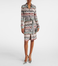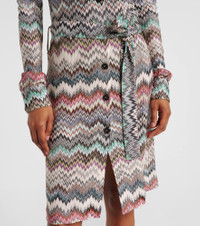 Missoni's iconic Zigzag pattern was first introduced in the 1950s and is now a symbol of Italian luxury. The pattern is featured on this shirt dress. Finished with a detachable belt, the design has a buttoned front. Product Details - Material: 100% viscose - Care instructions: dry clean - Made in Italy - Designer color name: Multicolor - Item color: multicolor - Closure: buttoned front - Collar: classic (Straight point) - Hem: straight - Detachable belt - Cuff: two buttons - Item number: P01045625 Size & Fit - True to size - Cinched waist - Stretchy fabric - Height of model is 175cm-69" and wears a size IT 40