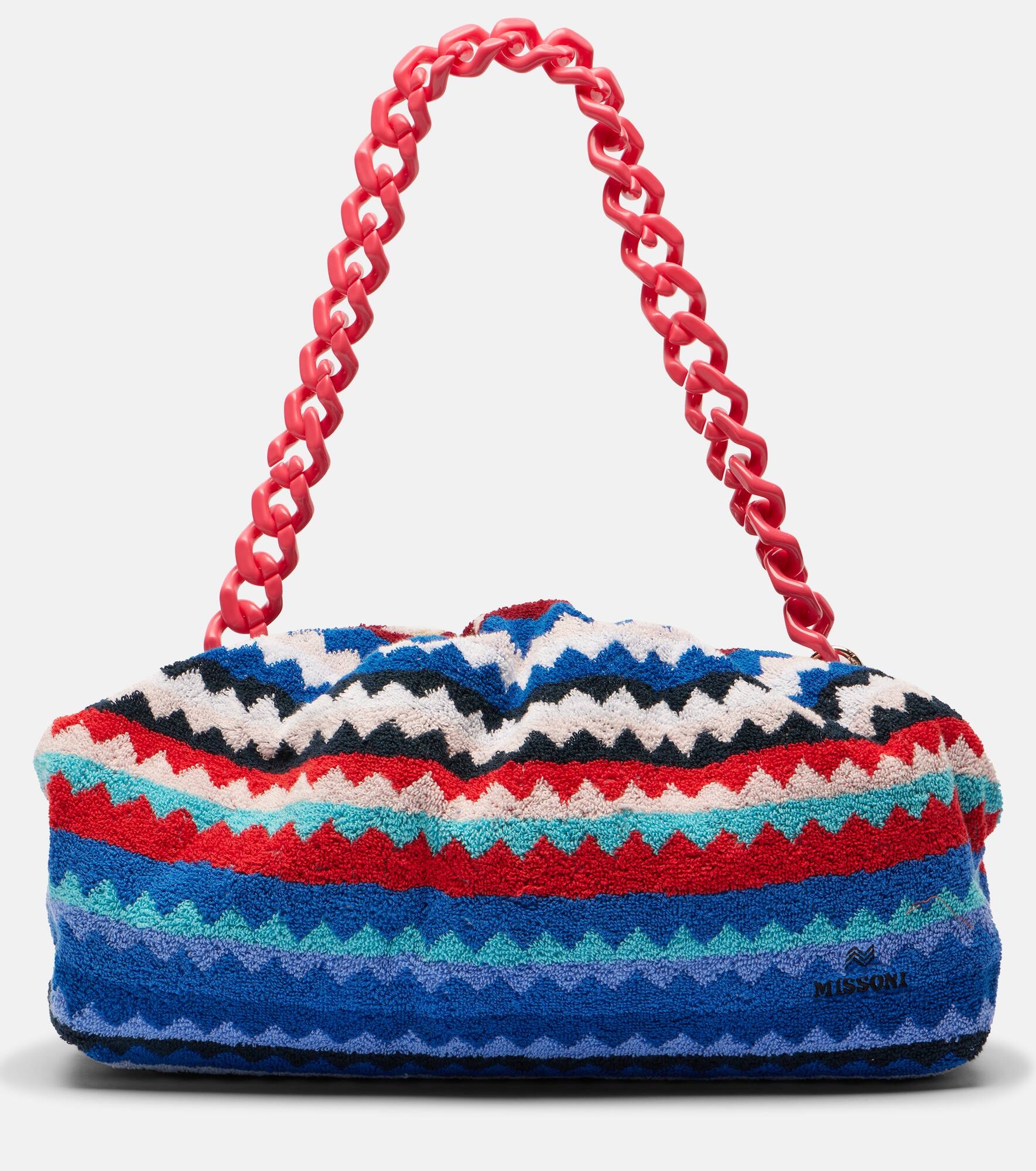 Missoni's zigzag shoulder bag see's the brand's signature pattern applied to a statement-making accessory. It features a roomy interior with a card slot and a plastic chain shoulder strap. Product Details - Material: fabric - Lining: fabric - Made in Italy - Designer color name: Multicolor - Item color: multicolor - Chain shoulder strap - Internal details: card slot - Contains non-textile parts of animal origin - Item number: P01020736 Size & Fit - Height 20cm-8" - Width 46cm-18" - Depth 11cm-4.5" - Length of handles 71cm-28"
