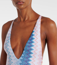 V-neck viscose blend zigzag lamé one-piece swimsuit