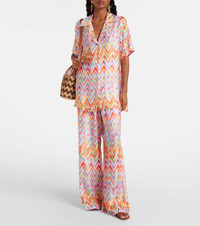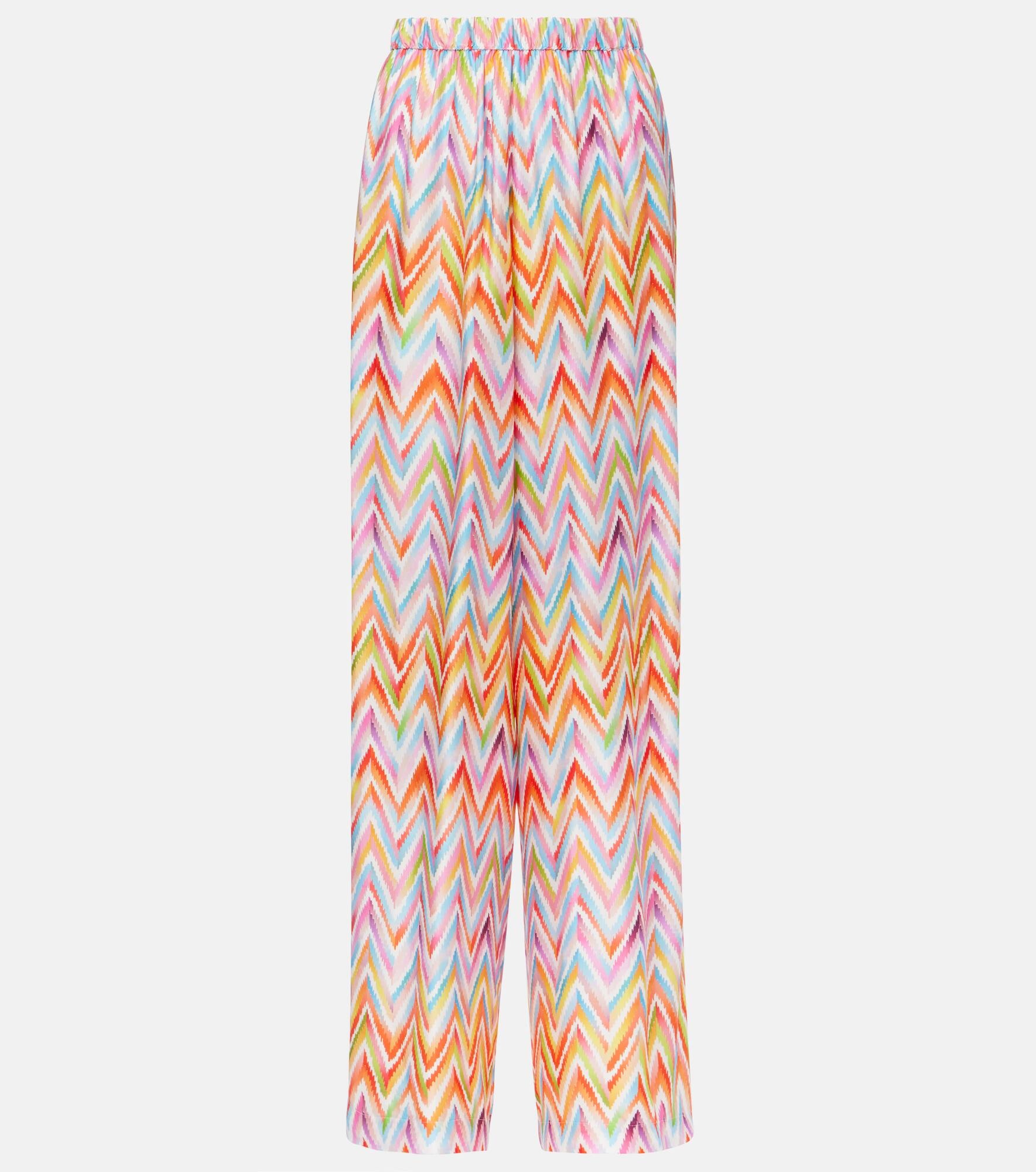 Missoni's iconic Zigzag pattern was first introduced in the 1950s and is now a symbol of Italian luxury. These pants feature the iconic motif atop their wide-leg silhouette. Product Details - Material: 100% viscose - Care instructions: dry clean - Made in Italy - Designer color name: Multicolor Micro Chevron - Item color: multicolor - Elasticated waistband - Item number: P01035095 Size & Fit - True to size - Elasticated waist - Non-stretchy fabric - Wide-leg - High-waisted - The model seen in the picture is 178cm-5'10" and wearing a size IT 38