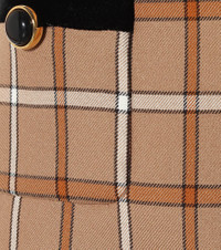 Miu Miu's darling miniskirt has been crafted in Italy with a retro oversized check pattern. Chic in "Cammello" beige, this design has two patch pockets with golden-toned buttons at the front. A lacy top and Mary Jane pumps will complete an on-brand look. Product Details - Lining: 100% polyester, fully lined - Made in Italy - Closure: zipped side - Designer color name: Cammello - Material: 64% polyester, 34% viscose, 2% cotton - Insert: 65% viscose, 35% cupro - Pockets: patch pockets - Care instructions: dry clean - Item number: P00405956 Size & Fit - True to size - High-waisted - The model seen in the picture is 178cm-5'10" and wearing a size IT 40