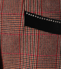 Embellished with clear crystals along the black velvet-trimmed pockets, this brown and red Prince of Wales-checked skirt from Miu Miu is a contemporary take on retro styles. It’s crafted in Italy from wool-blend twill, cut to a traditional A-line silhouette and finished with a buttoned front that fastens via an oval-shaped buckle. Wear yours with one of the label’s lace-trimmed cardigans for a feminine edit. Product Details - Attached belt - Made in Italy - Material: 90% wool, 10% polyamide - Designer color name: Rosso - Lining: 100% viscose, fully lined - Closure: snap-buttoned fastenings, buttoned front - Pockets: slit pockets - Care instructions: dry clean - Item number: P00405963 Size & Fit - True to size - High-waisted - The model seen in the picture is 178cm-5'10" and wearing a size IT 40