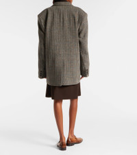 Uninhibited and deliberately subversive: these are the hallmarks of Miuccia Prada’s Miu Miu. This suit jacket is made from pure virgin wool in a single-breasted chevron design. Product Details - Material: 100% virgin wool - Care instructions: dry clean - Made in Italy - Designer color name: Ardesia - Item color: gray - Lining: 100% viscose - Contains non-textile parts of animal origin - Notched lapel - Shoulder pads - Cuff: three buttons - Pockets: patch pockets, internal pocket - Closure: single-breasted - Vent: single - Item number: P01069698 Size & Fit - True to size - Shoulder pad inserts - Oversized - Non-stretchy fabric - Falls below the hip - Height of model is 174cm-68.5" and wears a size IT 40
