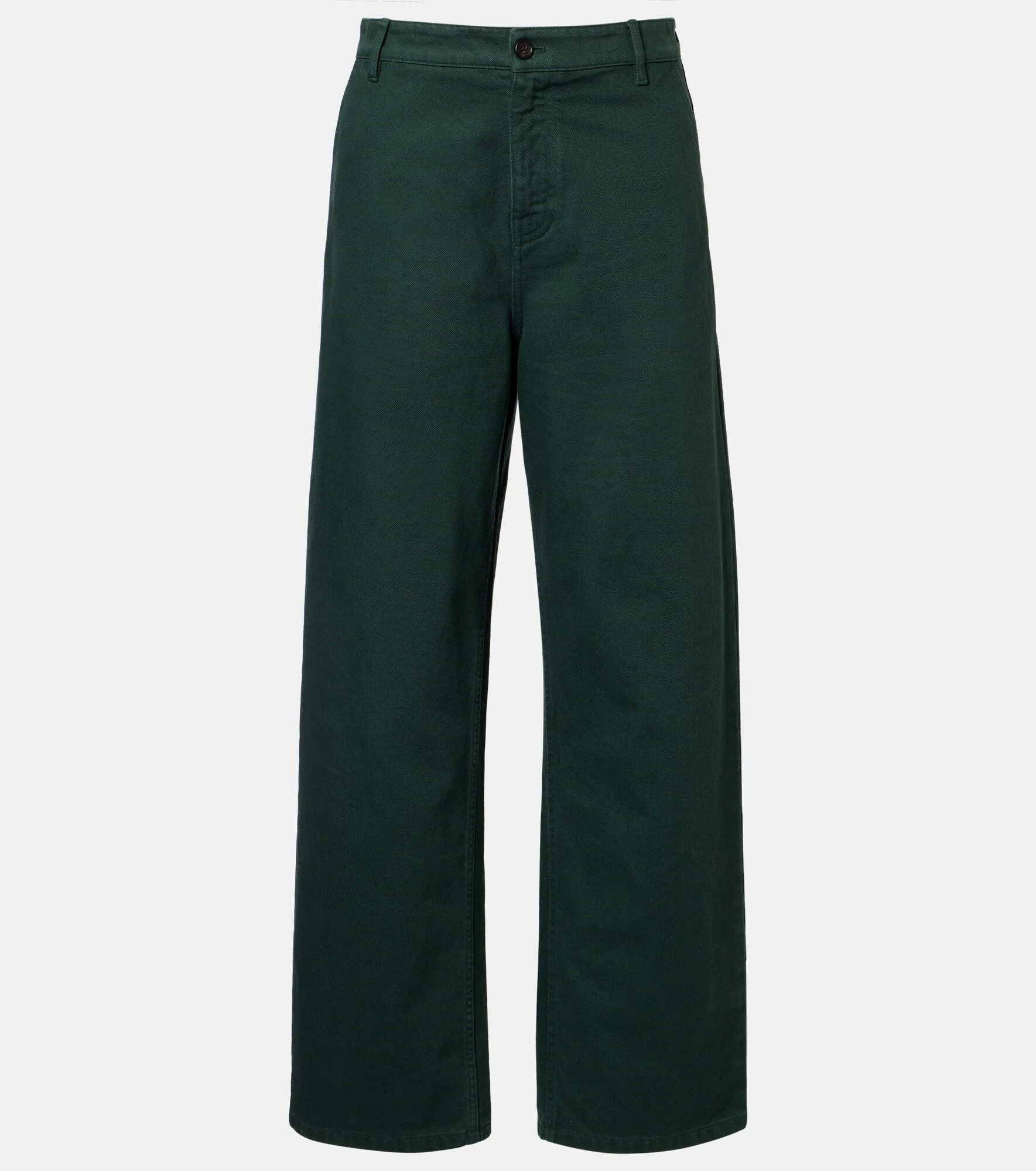 Uninhibited and deliberately subversive: these are the hallmarks of Miuccia Prada’s Miu Miu. Cut to a menswear-inspired fit, these straight pants are made from green-hued cotton gabardine with a classic zipper and button fastening. Product Details - Material: 100% cotton - Care instructions: hand wash cold - Made in Italy - Color: green - Designer color name: Bottiglia - Pocket lining: 100% cotton - Contains non-textile parts of animal origin - Belt loops - Pockets: slant pockets, back pockets - Closure: zipper fly, button fastening - Item number: P01180787 Size & Fit - True to size - Non-stretchy fabric - Wide-leg - The model seen in the picture is 178cm-5'10" and wearing a size IT 40