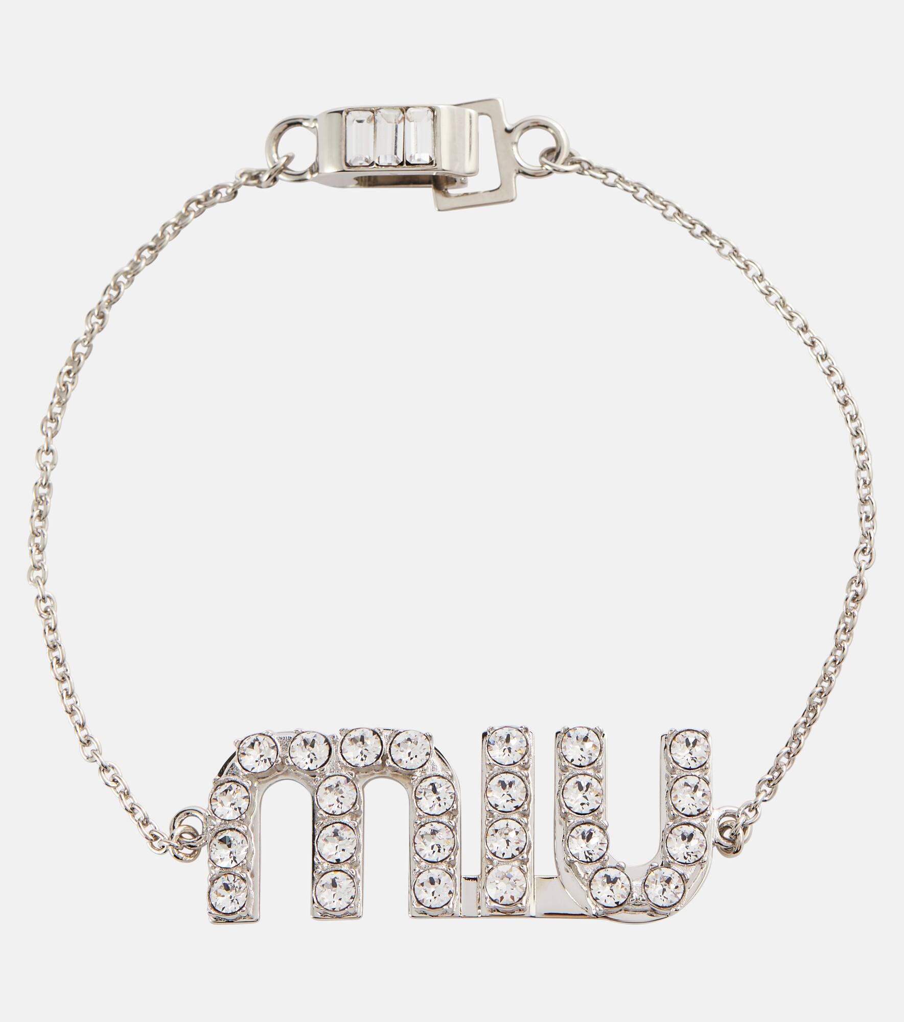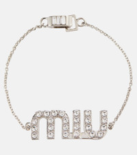 Finish your looks with a touch of sparkle courtesy of this silver-toned Miu Miu bracelet. The cable-chain design features a logo that's fully encrusted with crystals. Product Details - Pendant: crystals, glass - Made in Italy - Closure: lobster-clasp fastening - Material: brass - Designer color name: Acciaio Crystal - Item number: P00594488 Size & Fit - Length when open size S 16,5cm-6.5" - Length when open size M 17,5cm-7" - Length when open size L 19cm-7.5" - Min. width 0,2cm-0" - Max. width 1,5cm-0.5"