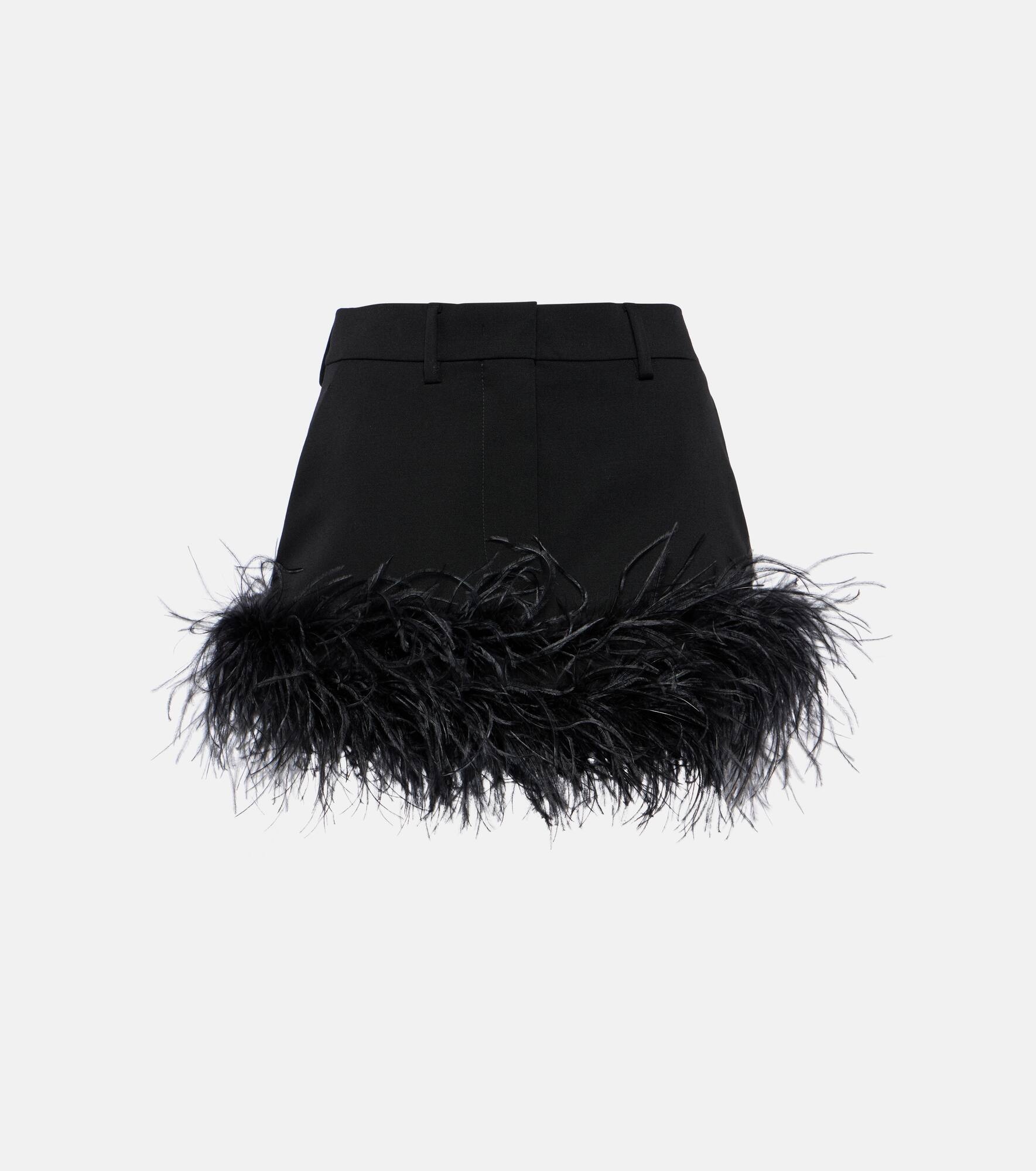 Feather-trimmed wool miniskirt
