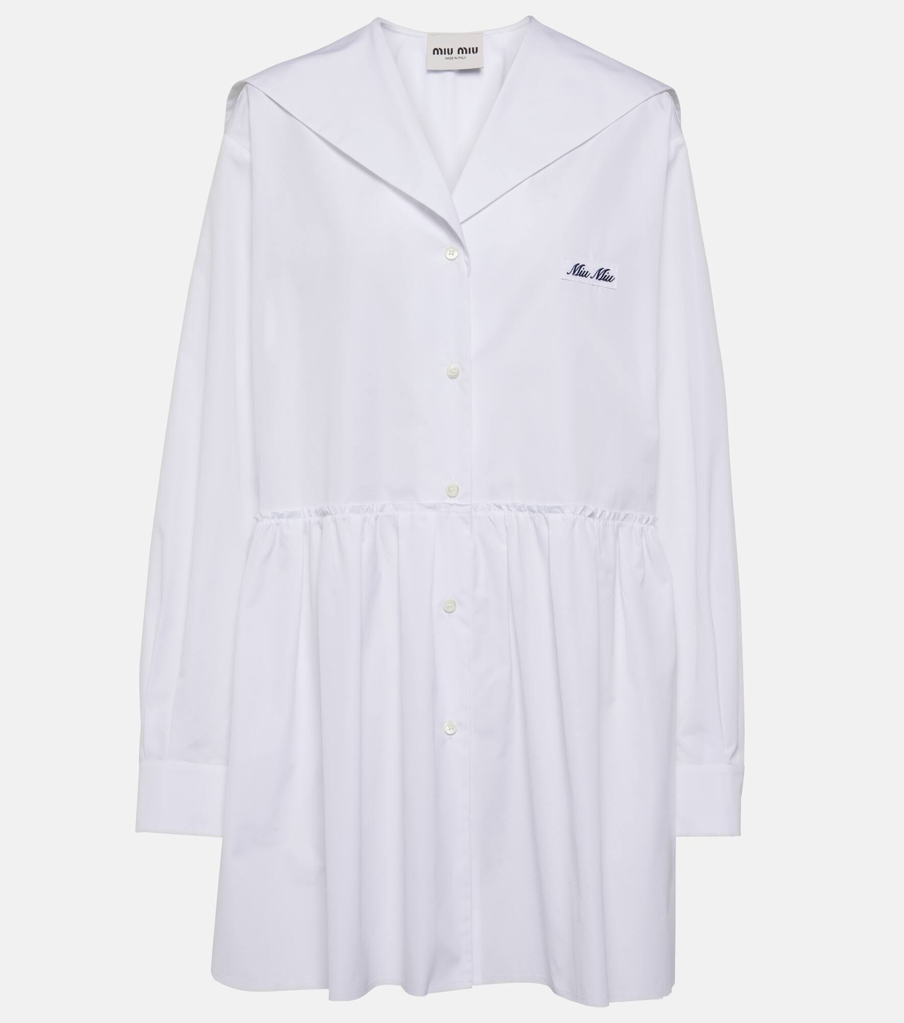 Gathered cotton poplin shirt dress
