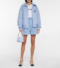 Miu Miu's elevates denim shorts with this high-rise pair. Made from rigid cotton, they're designed with a paper bag waist and cuffed hems for a playful and feminine look. Product Details - Pocket lining: 65% polyester, 35% cotton - Belt loops - Made in Italy - Designer color name: Celeste - Care instructions: machine wash at 30 degrees - Pockets: side slit pockets, back pockets - Closure: buttoned front - Material: 100% cotton - Item number: P00639154 Size & Fit - True to size - Elasticated waist - Wide-leg - High-waisted - The model seen in the picture is 178cm-5'10" and wearing a size IT 40