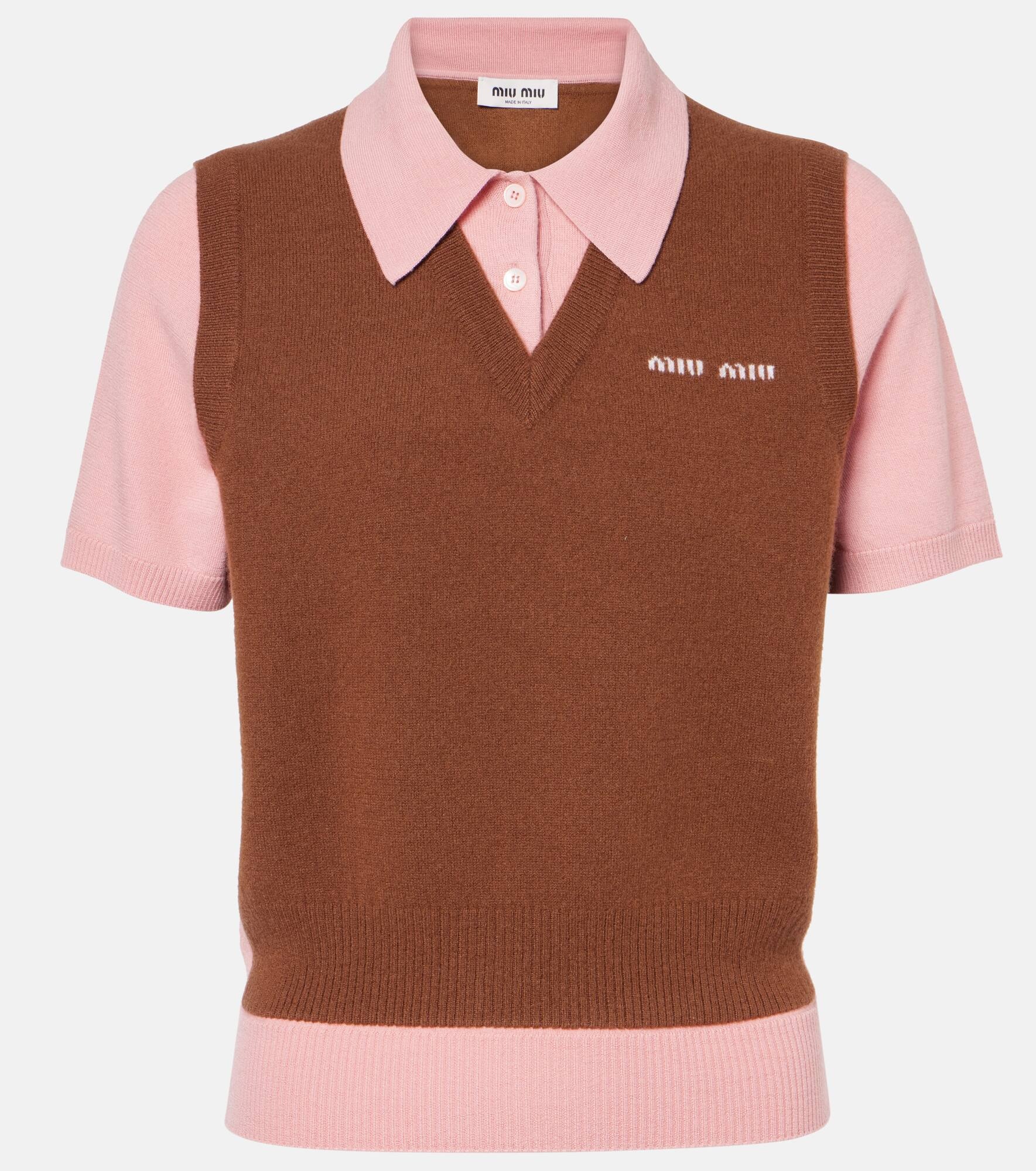 Layered wool and cashmere polo shirt
