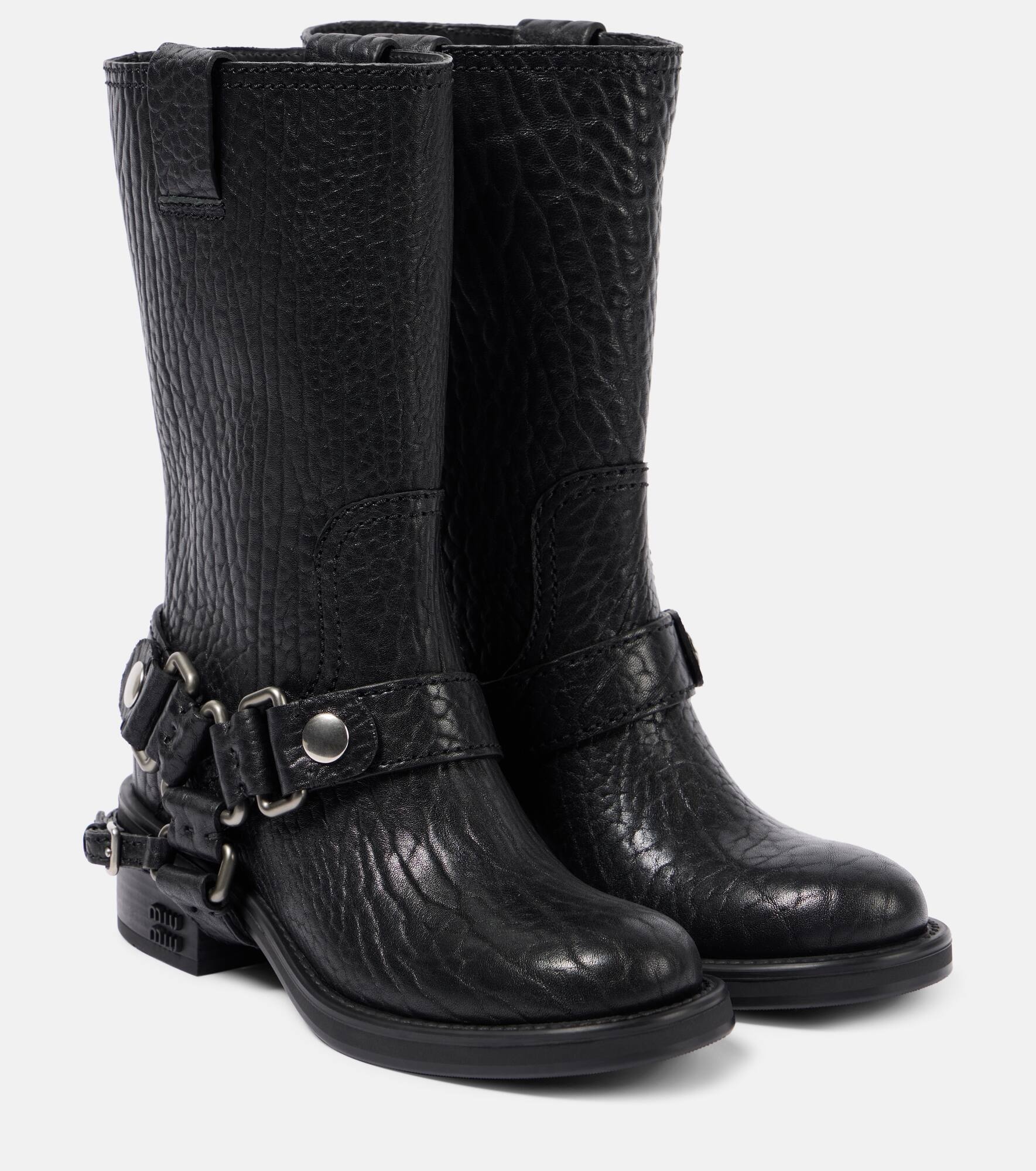 Leather biker boots