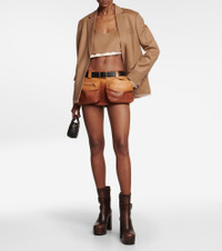 The iconic Miu Miu micro miniskirt is back with a suitably utilitarian re-vamp. It is made from supple leather with a gradient finish and features a sit-on-the-hip silhouette, belt loop accents, and capacious cargo pockets. Product Details - Lining: 93% cupro, 7% elastane, fully lined - Made in Italy - Material: 100% lamb leather - Designer color name: Miele - Closure: concealed zipper - Pockets: zipped pockets - Care instructions: do not wash - Item number: P00787125 Size & Fit - True to size - Sits low on the hips - The model seen in the picture is 178cm-5'10" and wearing a size IT 40