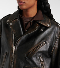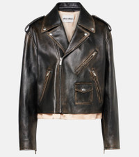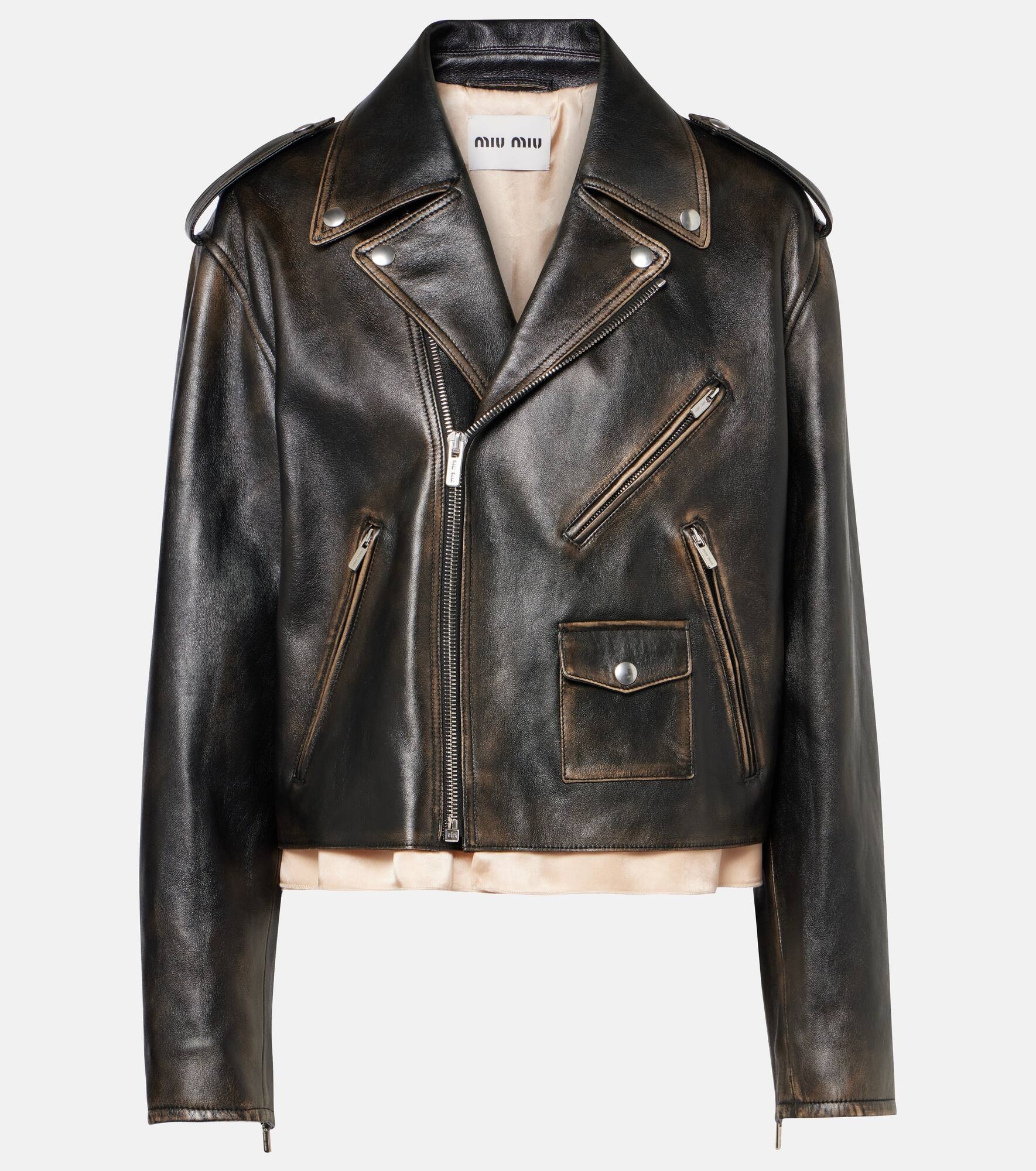 Product Details - Material: 100% lamb leather - Care instructions: specialist clean - Made in Italy - Designer color name: SENAPE+NERO - Lining: 69% acetate, 31% cupro - Filling: 55% polyester, 45% polyester (recycled) - Closure: zipped front - Pockets: zipped pockets, snap-buttoned pocket - Item number: P01004507 Size & Fit - Fits large to size - we recommend trying one size smaller - Dropped shoulders - Designed for a loose fit - Non-stretchy fabric - Slightly cropped - The model seen in the picture is 178cm-5'10" and wearing a size IT 38