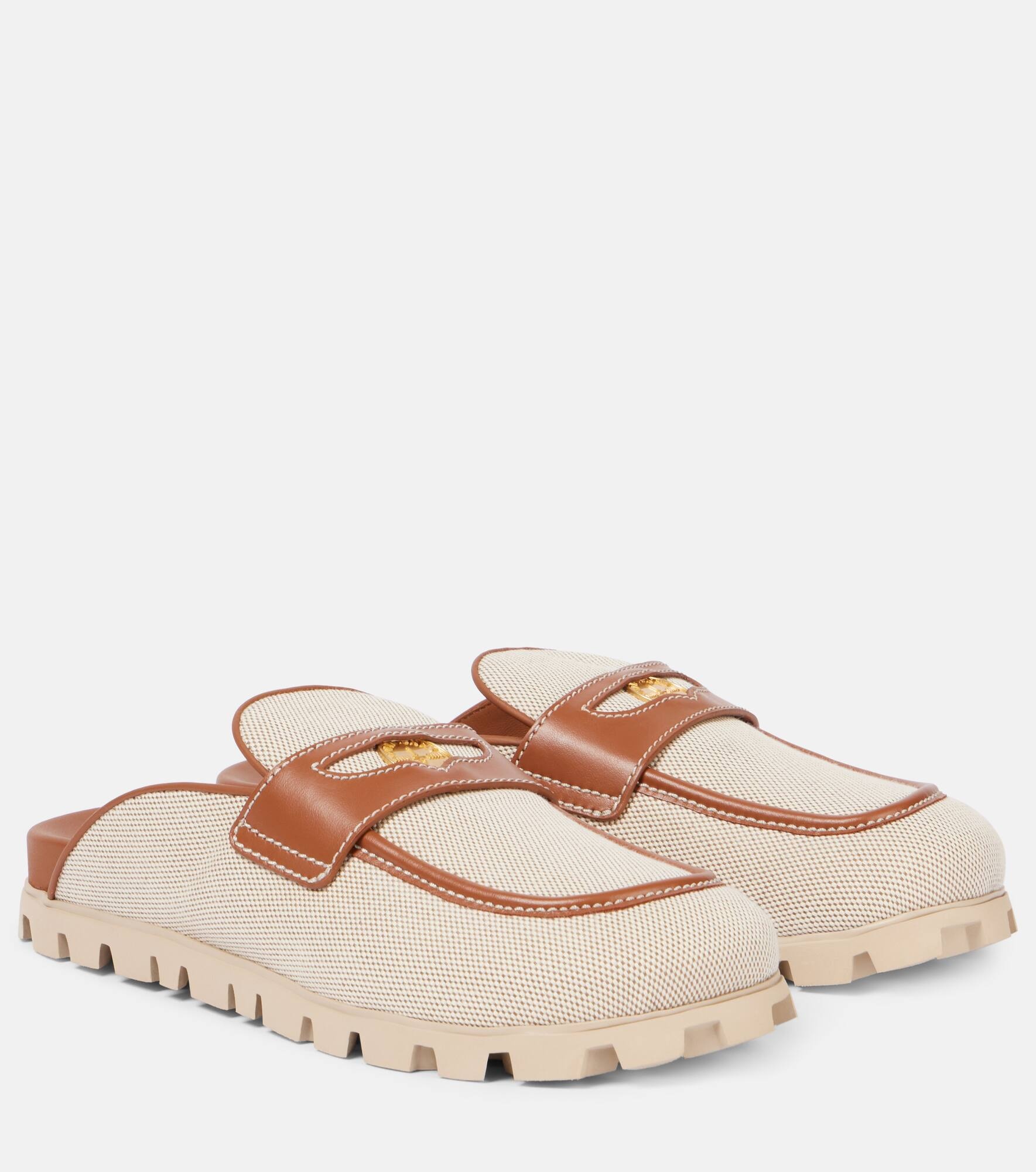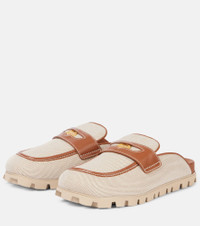 Leather-trimmed canvas mules