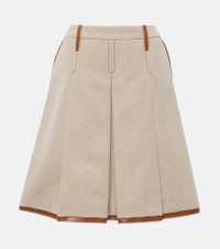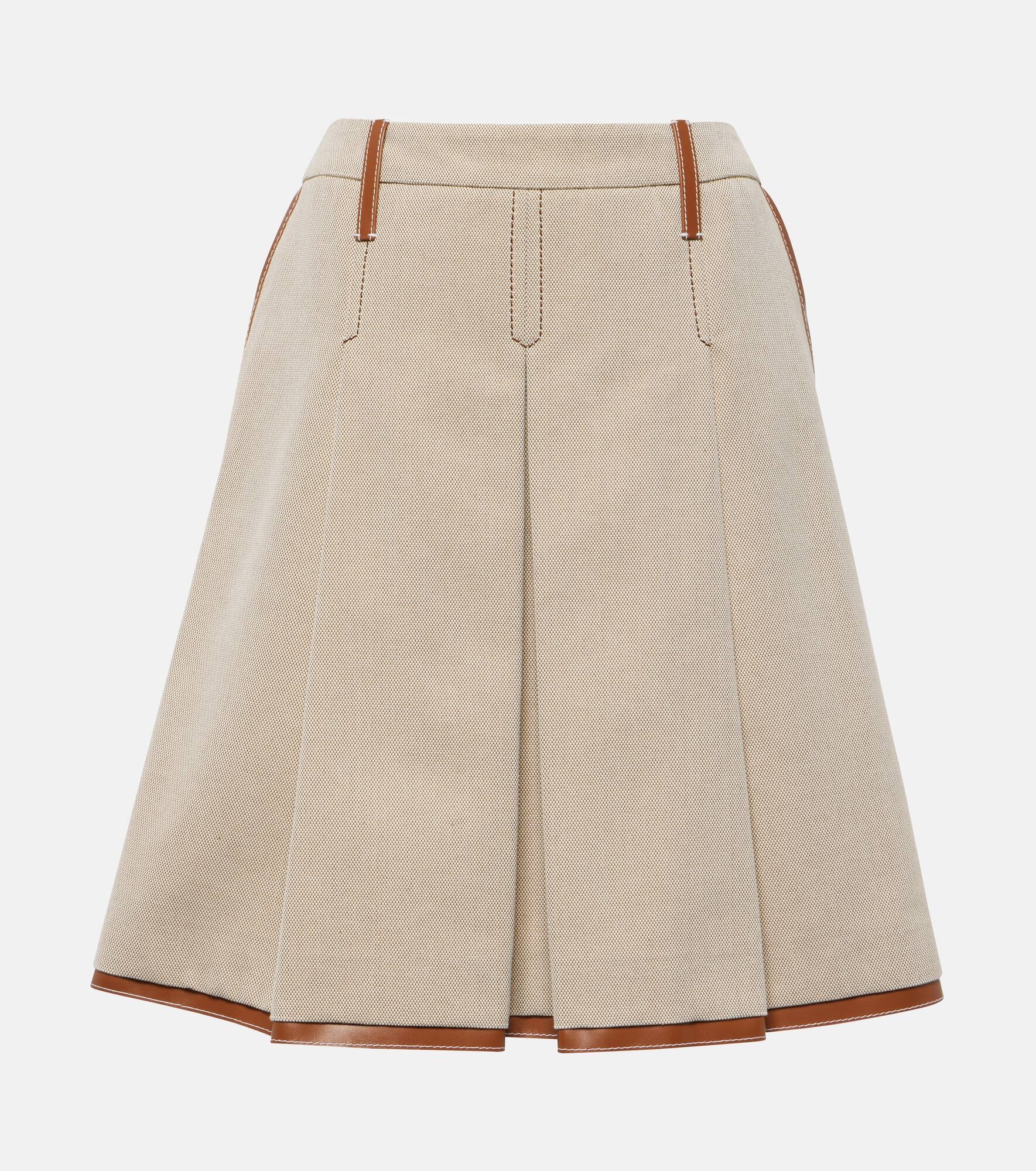 Leather-trimmed jacquard canvas midi skirt