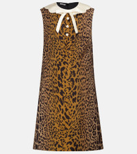 Miu Miu's take on the leopard-print minidress is decidedly sweet, framed with a scalloped satin-finished collar. This wool and mohair style has a classic sleeveless shift silhouette. Further the '60s mood by styling yours with Mary Jane pumps. Product Details - Lining: 100% viscose, fully lined - Made in Italy - Material: 84% wool, 16% mohair - Designer color name: Kaki - Closure: zipped back, hook fastening - Care instructions: dry clean - Item number: P00528361 Size & Fit - True to size - Designed for a loose fit - The model in the picture is 185cm-6'1" and wearing a size IT 40