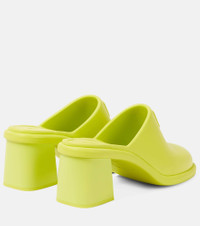 Swap your slides for these Miu Miu clogs come pool time. They're made from lightweight EVA with embossed logo insignia at the vamps and 65mm block heels. Product Details - Lining: rubber - Toe shape: round toe - Upper: rubber - Sole: rubber insole and sole - Made in Italy - Designer color name: Lime - Item number: P00647502 Size & Fit - True to size - Half sizes please take the next size up - European sizes - 8,5cm-3.5" heel (size EU 38)