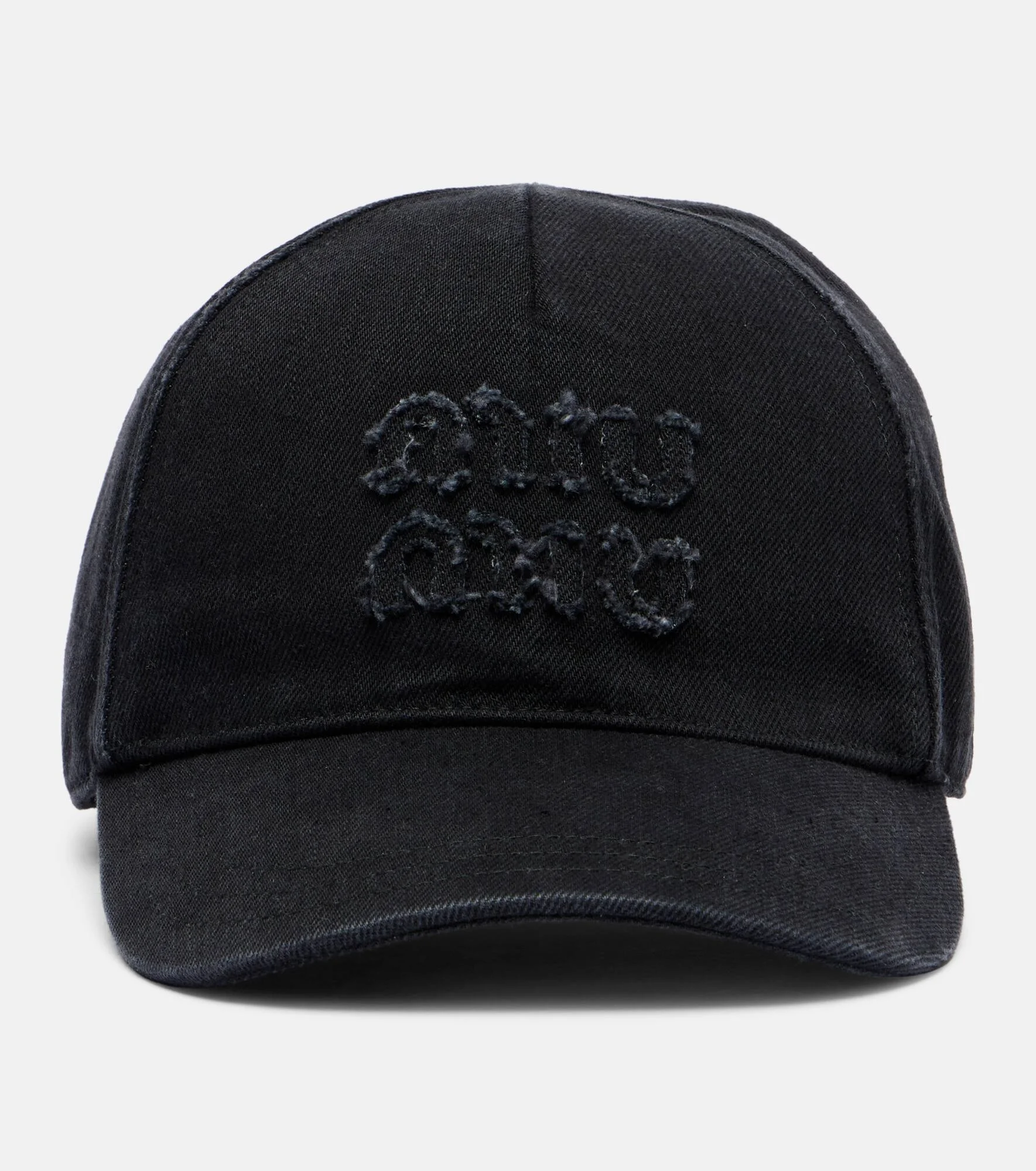 This baseball cap from Miu Miu offers a chic interpretation of the sporty accessory. Made from black cotton denim, the piece comes with the brand's logo lettering on the front for instant recognition. Product Details - Material: 100% cotton - Care instructions: dry clean - Made in Italy - Designer color name: Black - Item color: black - Lining: 57% polyester, 43% acetate - Includes: dust bag - Item number: P01084304 Size & Fit - Adjustable size - Circumference size M 58cm-23" - Length of visor 7cm-3"