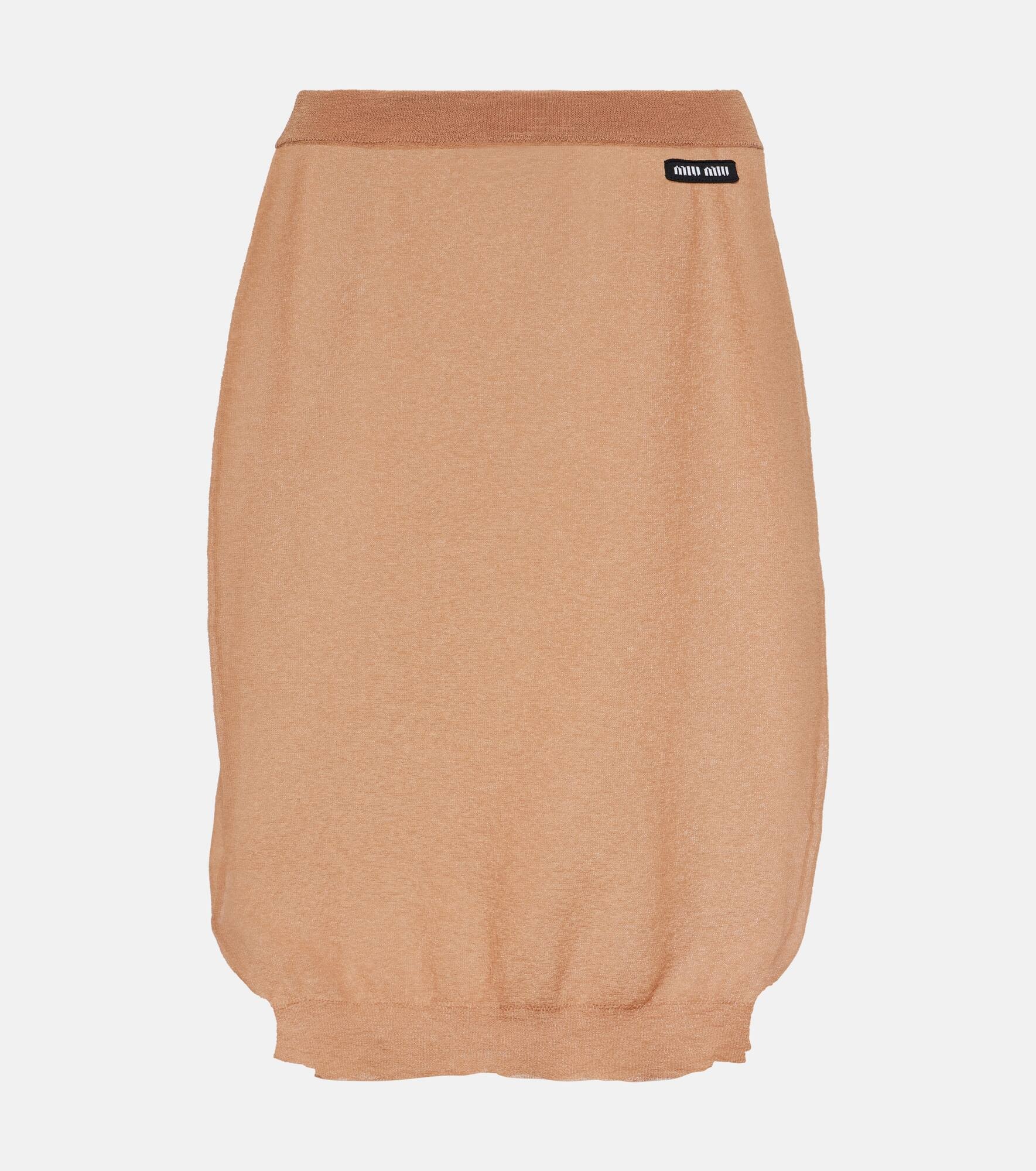 Uninhibited, carefree, and deliberately subversive: these are the hallmarks of Miuccia Prada’s Miu Miu. Knitted from semi-sheer nylon, this midi skirt has a pencil silhouette with a relaxed fit and is finished with ribbed trims. Product Details - Material: 100% polyamide - Care instructions: dry clean - Made in Italy - Designer color name: Cammello - Item number: P00843962 Size & Fit - True to size - Sheer - Elasticated waist - The model seen in the picture is 178cm-5'10" and wearing a size IT 40