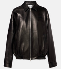 Uninhibited, carefree, and deliberately subversive: these are the hallmarks of Miuccia Prada’s Miu Miu. Crafted from supremely soft nappa leather, this minimalist jacket features a slightly oversized fit and logo debossed detailing on the chest. Product Details - Material: 100% lamb leather - Care instructions: specialist clean - Made in Italy - Designer color name: Nero - Item color: black - Lining: 100% cotton - Pocket lining: 100% viscose - Closure: two-way zipped front - Pockets: welt pockets - Hem: elasticated - Includes: garment bag - Item number: P01037963 Size & Fit - True to size - Dropped shoulders - Designed for a loose fit - Elasticated hem - Non-stretchy fabric - Falls below the hip - The model seen in the picture is 178cm-5'10" and wearing a size IT 40