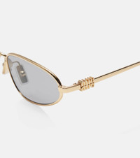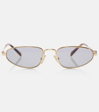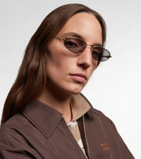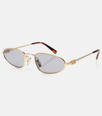 Uninhibited, carefree, and deliberately subversive: these are the hallmarks of Miuccia Prada’s Miu Miu. Featuring logo embellishments at the temples, these sunglasses have a unique, almost-oval silhouette that will make you stand out. Product Details - Frame material: metal - Frame color: gold - Lens filter category 2 - Lens color: grey - Made in Italy - Includes: case and presentation box - Designer color name: Gold/Grey - Item number: P00992614 Size & Fit - Lens width: 52mm-2.05" - Bridge size: 19mm-0.75" - Earpiece length: 140mm-5.5"
