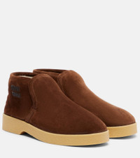 These ankle boots from Miu Miu are made of smooth suede and lined with soft shearling for all-day comfort. The pair is set on sturdy soles and finished with logo detailing on the sides. Product Details - Upper: calf leather (suede) - Lining: shearling - Sole: shearling insole, rubber sole - Color: brown - Toe shape: round toe - Made in Italy - Includes: dust bag, shoe box - Designer color name: Brown - Item color: brown - Item number: P01147910 Size & Fit - True to size - European sizes - 2,5cm-1" platform - 4cm-1.5" wedge heel
